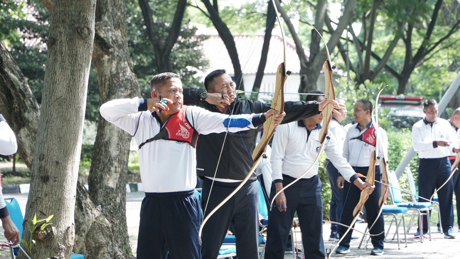 Setelah selesai memberikan pengarahan, Dankodiklatal melaksanakan olah raga panahan dan woodball bersama Pejabat Utama Kodiklatal di lapangan Jamparing Kodiklatal Bumimoro Surabaya.
