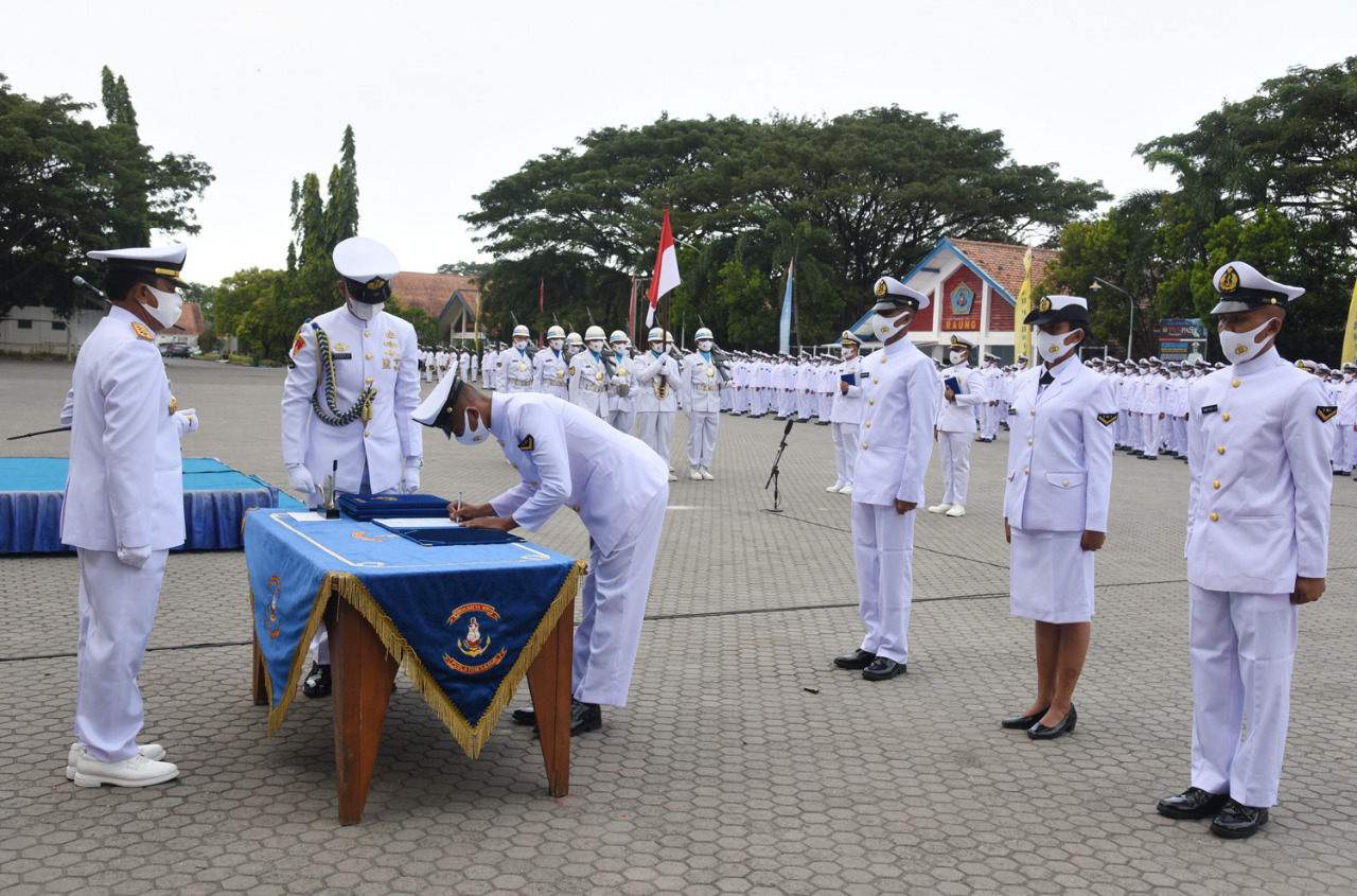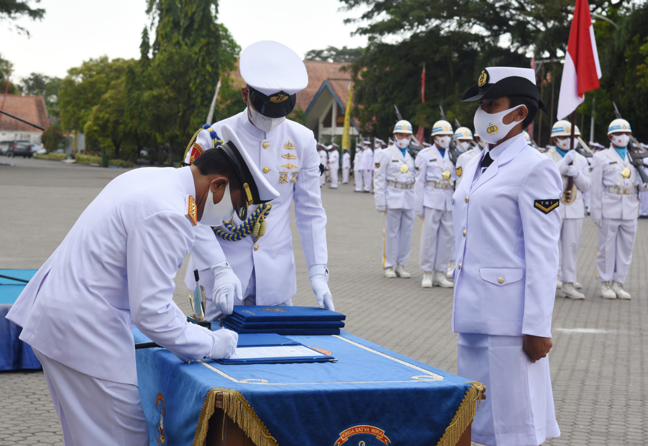Komandan Komando Pembinaan Doktrin Pendidikan dan Latihan TNI Angkatan Laut (Dankodiklatal) Laksdya TNI Nurhidayat melantik dan mengambil sumpah Siswa Pendidikan Pertama Bintara (Dikmaba) TNI AL Angkatan ke-40 Gelombang 1 Tahun Anggaran 2020 yang dilaksanakan di Lapangan Candradimuka Pusat Latihan Pendidikan Dasar Militer (Puslatdiksarmil) Kodiklatal yang berlokasi di Juanda Sidoarjo, Selasa, (20/04/2021).