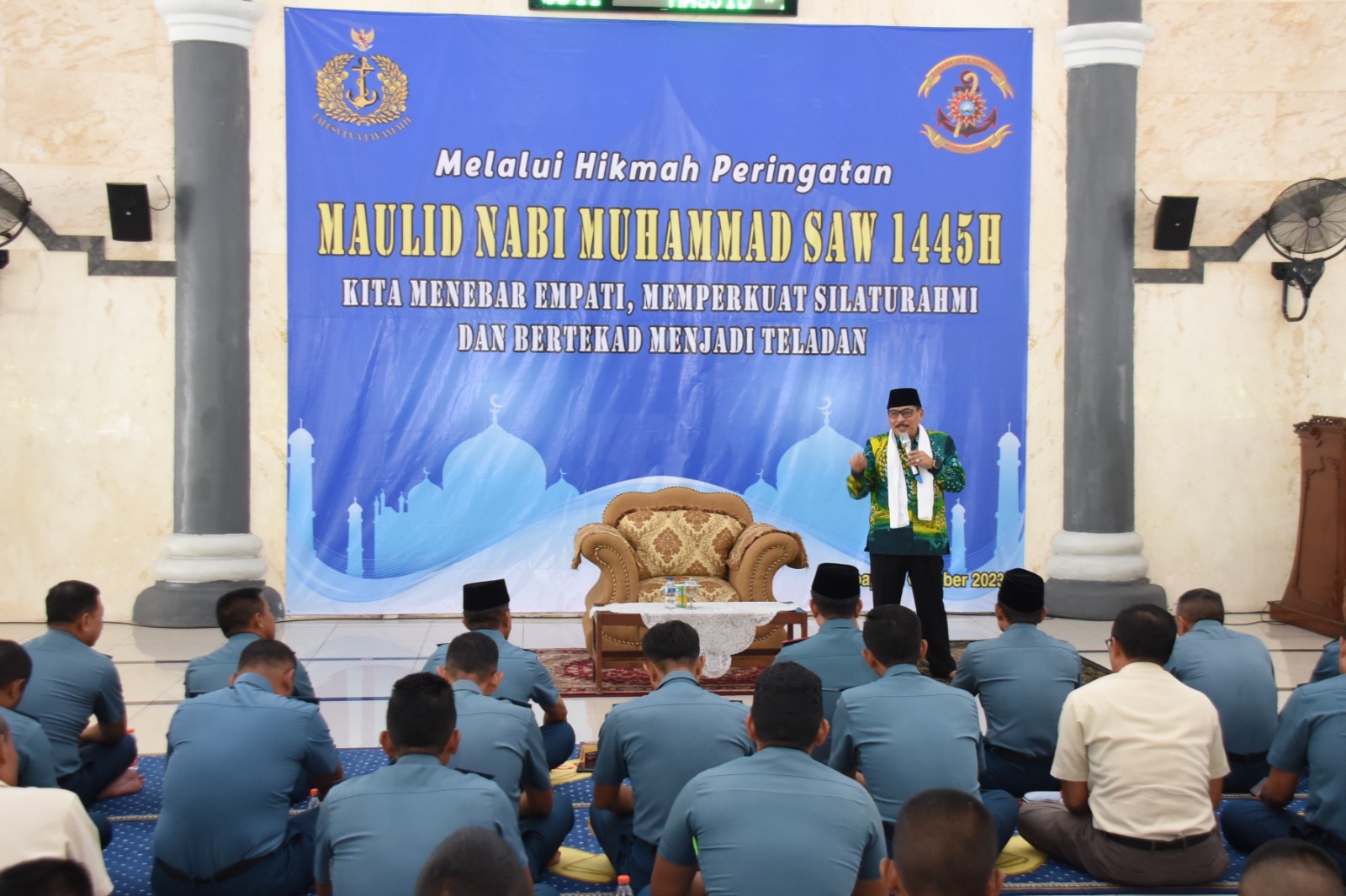 Demikian dalam amanat tertulis Dankodiklatal Letjen TNI Marinir Suhartono yang dibacakan Ir. Kodiklatal Brigjen TNI Marinir Amir Faisol saat membuka acara Peringatan Maulid Nabi Muhammad SAW 1445 H/2023 M, bertempat di Masjid Ibadurrahman Kodiklatal, Bumimoro Surabaya. Rabu, (04/10/2023).