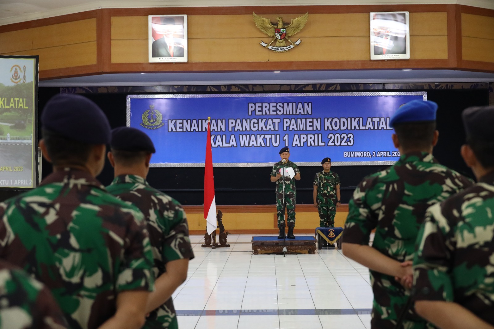 Dari 21 personel Kodiklatal yang naik pangkat satu tingkat lebih tinggi dari pangkat sebelumnya yakni, 15 orang mendapat kenaikan pangkat dari Kapten ke Mayor, 5 orang mendapatkan kenaikan pangkat dari Mayor ke Letkol, dan 1 orang lainnya naik pangkat dari Letkol ke Kolonel.