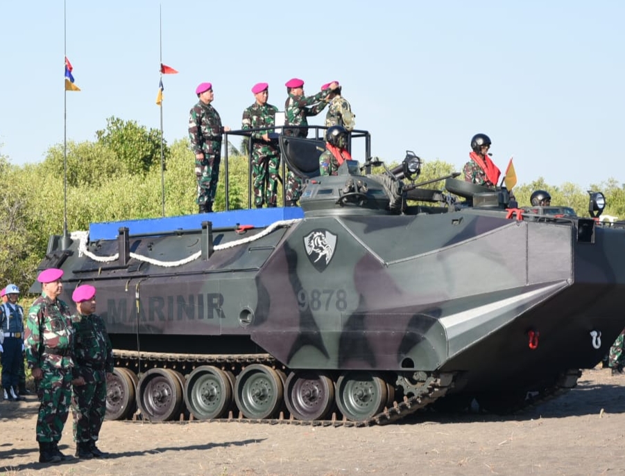 Penganugerahan tersebut ditandai pemasangan Brevet Kehormatan Anti Teror Aspek Laut dan Intai Para Amfibi Korps Marinir di Pantai Banongan, Situbondo, Jawa Timur, Selasa (1/8/2023). Turut hadir Panglima TNI Laksamana TNI Yudo Margono, KSAD Jenderal TNI Dudung Abdurachman, KSAL Laksamana TNI Muhammad Ali, dan KSAU Marsekal TNI Fadjar Prasetyo yang meninjau sekaligus menyaksikan langsung Latgab TNI 2023 dengan sandi Dharma Yudha tersebut.