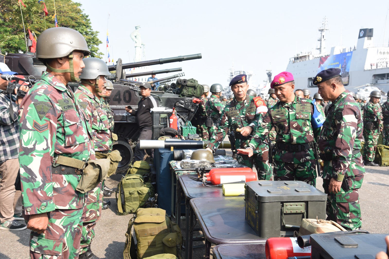Komando Pembinaan Doktrin, Pendidikan dan Latihan TNI AL (Dankodiklatal) Letnan Jenderal TNI Marinir Suhartono selaku Direktur Latihan Armada Jaya (Dirlat AJ) meninjau pelaksanaan Apel Gelar Pasukan jelang puncak Latihan Armada Jaya XLI TA 2023 yang dipimpin Panglima Koarmada Republik Indonesia (Pangkoarmada RI) Laksdya TNI Heru Kusmanto sebagai Pangkogab TNI, bertempat di Dermaga Madura Koarmada II Ujung , Surabaya , Selasa (27/06).