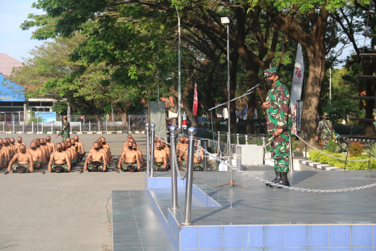 Dalam rangka melihat secara langsung kegiatan siswa, Komandan Komando Pembinaan Doktrin Pendidikan dan Latihan TNI Angkatan Laut (Dankodiklatal) Laksamana Madya TNI Nurhidayat melaksanakan kunjungan ke Pusat Latihan Pendidikan Dasar Kemiliteran (Puslatdiksarmil) Kodiklatal yang berlokasi di Juanda Sidoarjo, Kamis (15/07).