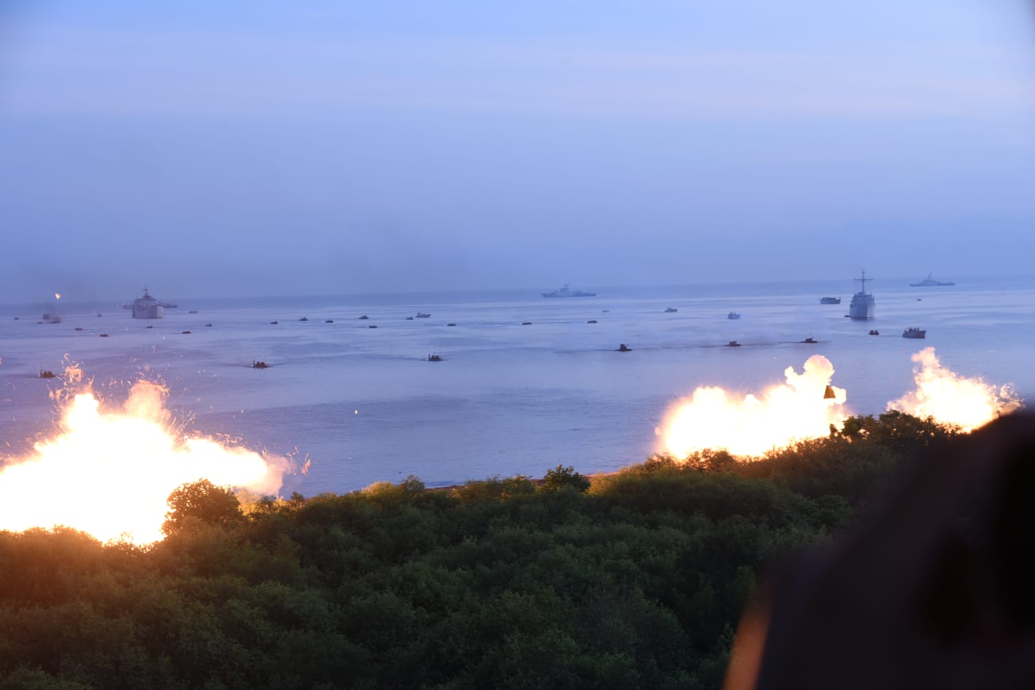 Komandan Komando Pembinaan Doktrin Pendidikan dan Latihan TNI Angkatan Laut (Dankodiklatal) Letjen TNI Marinir Suhartono meninjau langsung aksi Pendaratan Pasukan Amfibi Korps Marinir di Pantai Banongan, Situbondo Jawa Timur pada Selasa (1/8/2023).