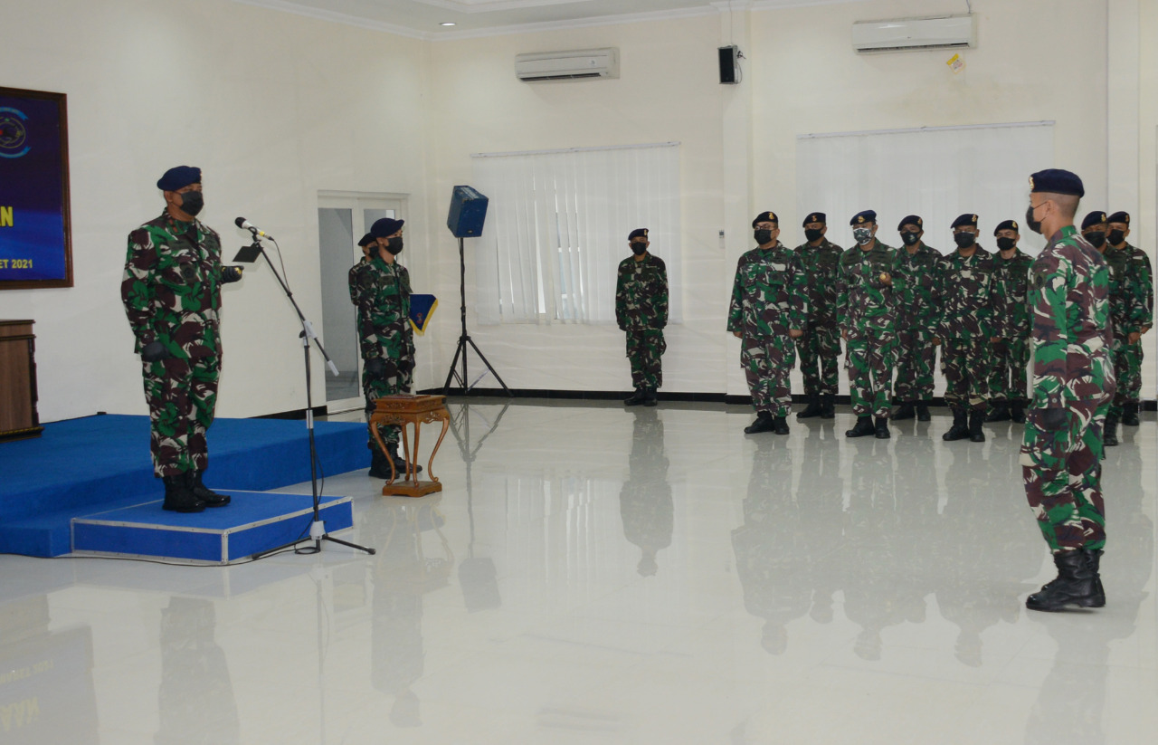 Komandan Komando Pendidikan Operasi Laut (Dankodikopsla) Komando Pembinaan Doktrin, Pendidikan dan Latihan TNI Angkatan Laut (Kodiklatal) Laksma TNI Eko Wahjono, S.E menutup Pendidikan Pertama Perwira Prajurit Karier (Dikmapa PK) TNI AL Angkatan ke-27 Khusus Tenaga Kesehatan TA 2021 tahap Kematraan yang dilaksanakan di Gedung Betle Geuse Pusat Pendidikan Lanjutan Perwira (Pusdiklapa) Kodiklatal Bumimoro Surabaya, Rabu, (24/3/2021).