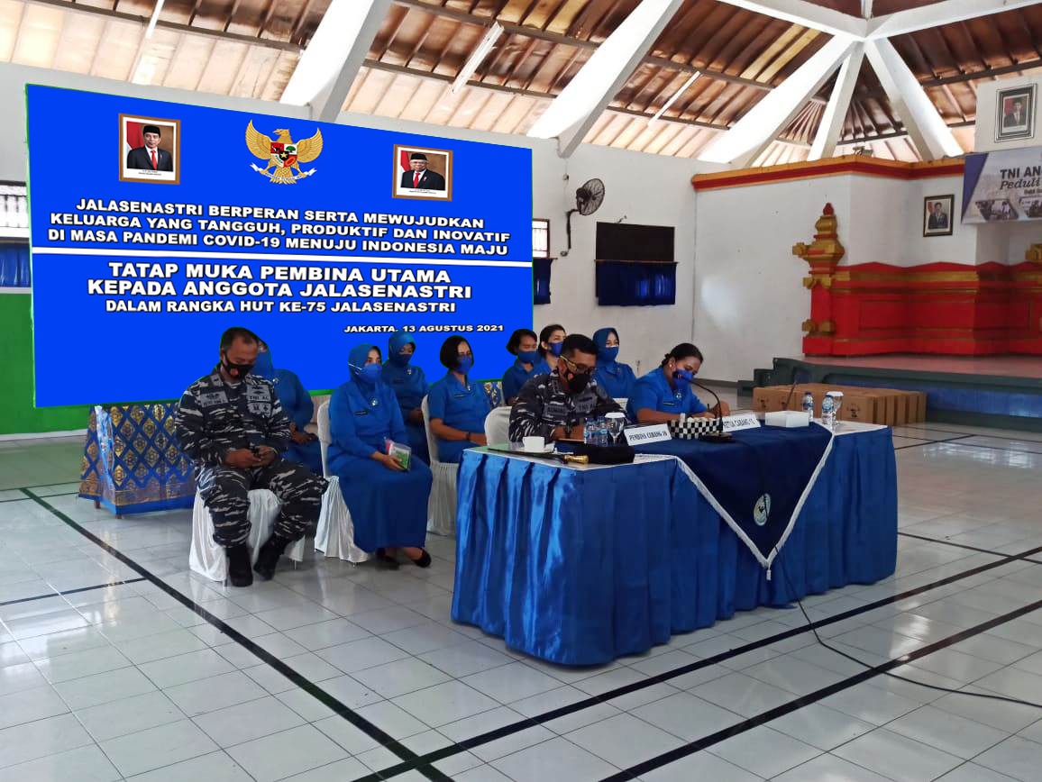 Komandan Pangkalan TNI AL (Danlanal) Kolonel Laut (P) I Komang Teguh Ardana S.T., M.A.P., selaku Pembina Jalasenastri Cabang 10 didampingi Ketua Cabang 10 Korcab V Daerah Jalasenastri Armada II Ny. Citra I Komang Teguh Ardana beserta segenap Jajaran Pengurus Jalasenastri Cabang 10, mengikuti tatap muka SECARA VIRTUAL melalui Video Conference dengan Kepala Staf TNI Angkatan Laut (Kasal) Laksamana TNI Yudho Margono, S.E., M.M., selaku Pembina Utama Jalasenastri, dalam rangka HUT Ke-75 Jalasenastri dengan tema “Jalasenastri Berperan Serta Mewujudkan Keluarga yang Tangguh, Produktif dan Inovatif di Masa Pandemi Covid-19 Menuju Indonesia Maju”, Jumat (13/08/2021).
