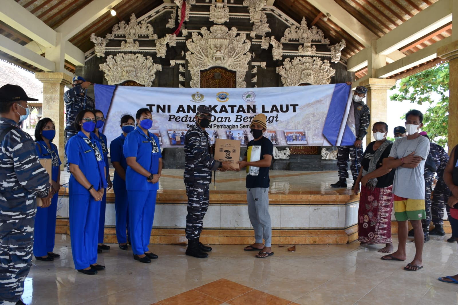 Dengan menggunakan sarana fast boat Gangga Express Komandan Pangkalan TNI AL (Danlanal) Denpasar Kolonel Laut (P) I Komang Teguh Ardana, S.T., M.A.P., pimpin pelaksanaan bakti social di Pulau Nusa Penida Kabupaten Klungkung Bali. Dengan menempuh perjalanan laut sekitar 45 menit, menggunakan sarana fast boat rombongan membawa 85 paket sembako untuk dibagikan kepada masyarakat yang ekonominya terdampak Covid-19 di Pulau Nusa Penida.