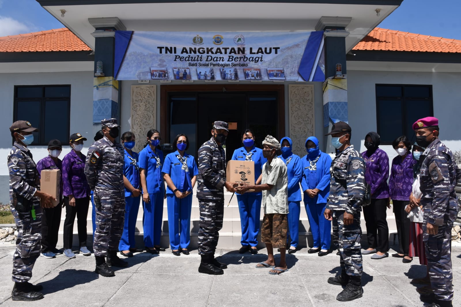Pelaksanaan pembagian sembako oleh Danlanal Denpasar yang didampingi oleh Ketua Cabang 10 Korcab V DJA II Ny. Citra I Komang Teguh Ardana kepada perwakilan masyarakat, yang dihadiri Kepala Dusun Cila Gilandan, Desa Suana Bapak Wayan Daya, dan Kepala Dusun Karang Sari, Desa Suana Bapak Wayan Dharma.