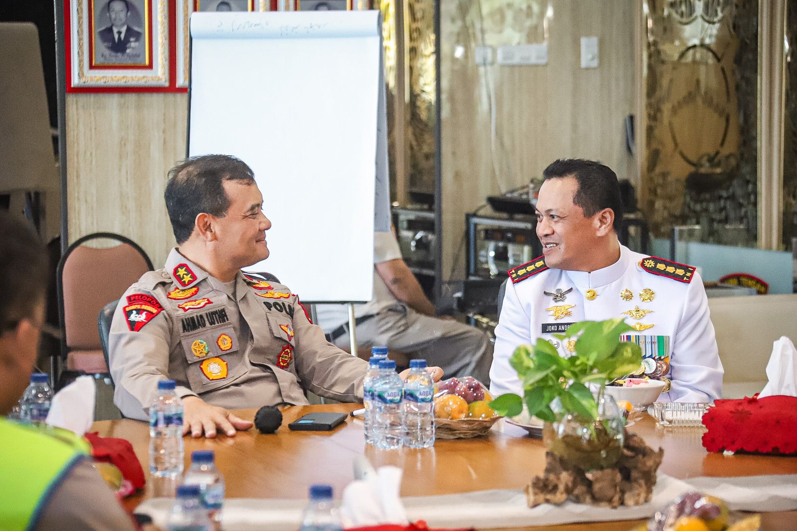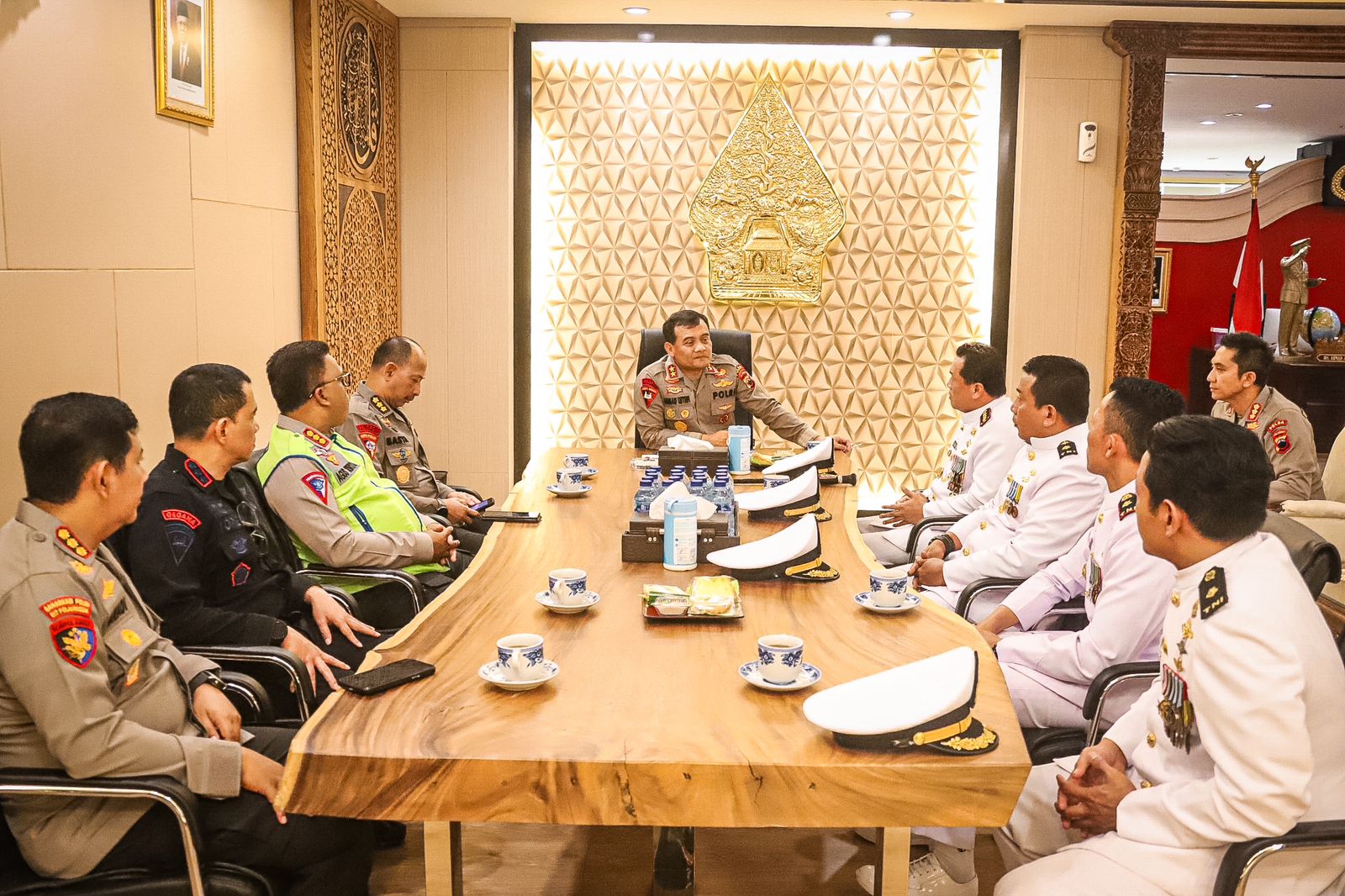 Komandan Pangkalan TNI Angkatan Laut (Danlanal) Semarang Kolonel Laut (E) Joko Andriyanto, ST., M.Tr. Hanla., M.A.P. di dampingi Perwira Staf Lanal Semarang melaksanakan Courtessy Call (CC) ke Kepala Kepolisian Daerah (Kapolda) Jawa Tengah di Jl. Pahlawan No.1, Mugassari, Kec. Semarang Selatan, Kota Semarang. Rabu (4/10/2023).