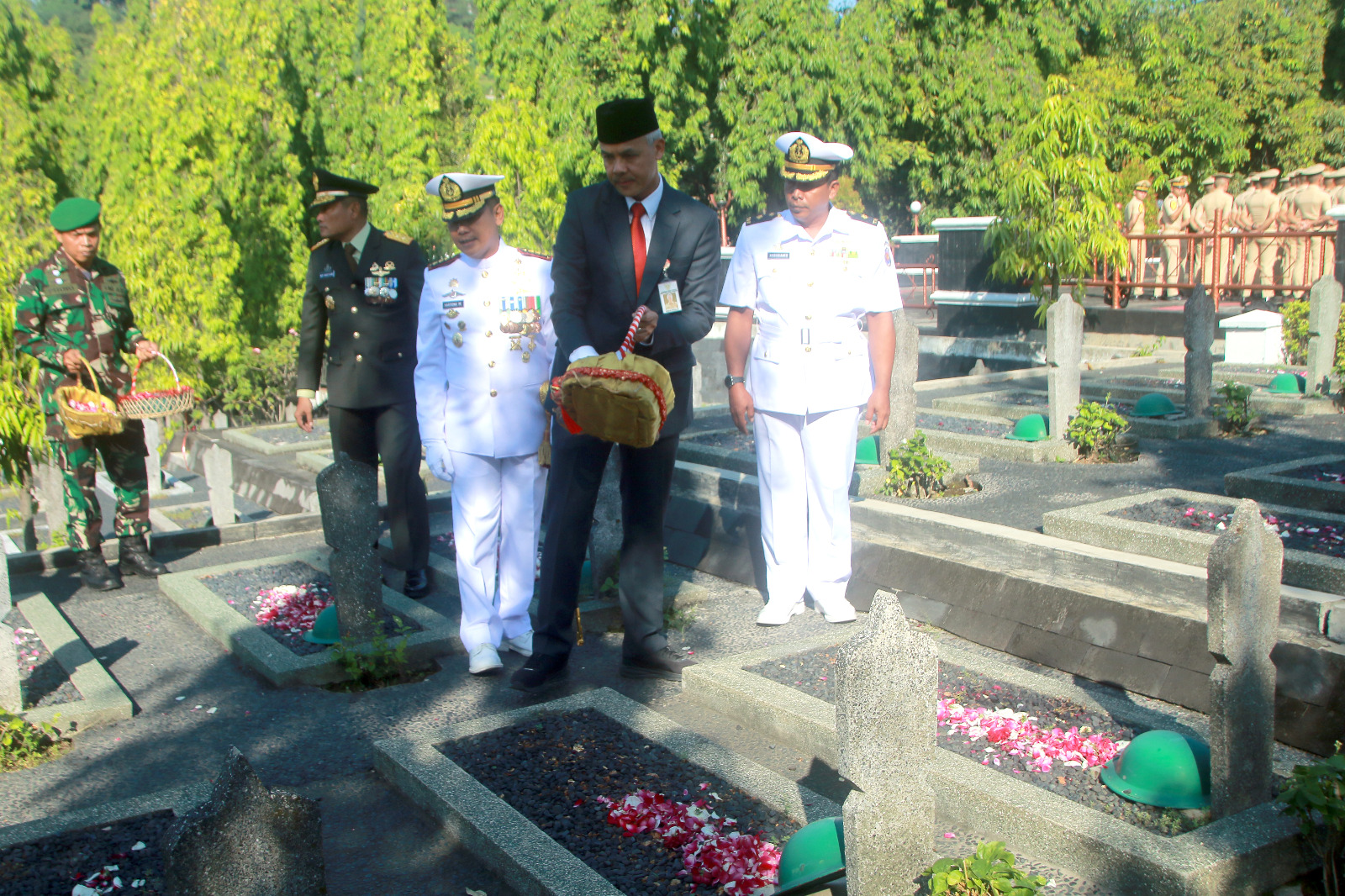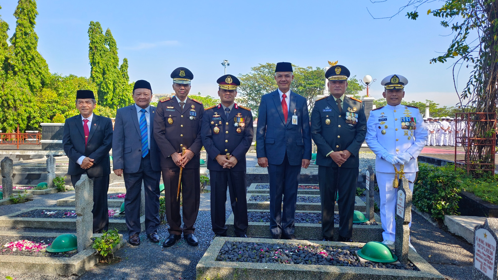 Usai pelaksanaan upacara peringatan ke 115 Hari Kebangkitan Nasional (Harkitnas) yang di lakasnakan di Halaman Kantor Gubernur Jawa Tengah, Komandan Pangkalan TNI Angkatan Laut (Danlanal Semarang) Kolonel Marinir Hariyono Masturi, M.Tr.Hanla., M.M bersama Forkopimda Jateng menziarahi Taman Makam Pahlawan Giri Tunggal di Jl Pahlawan Kota Semarang. Senin (22/5/2023).