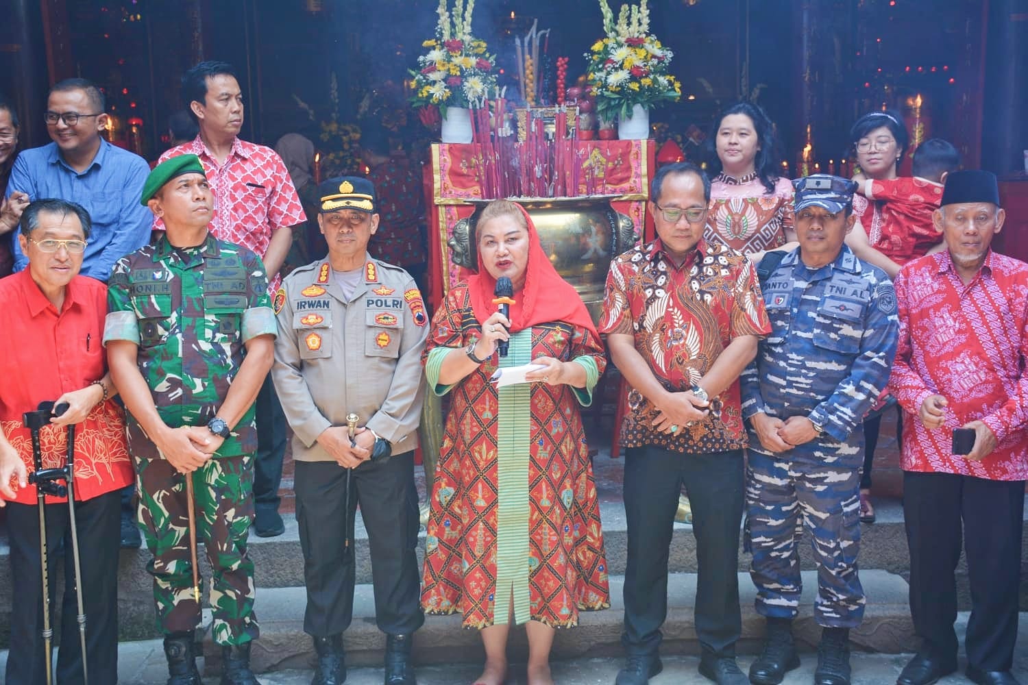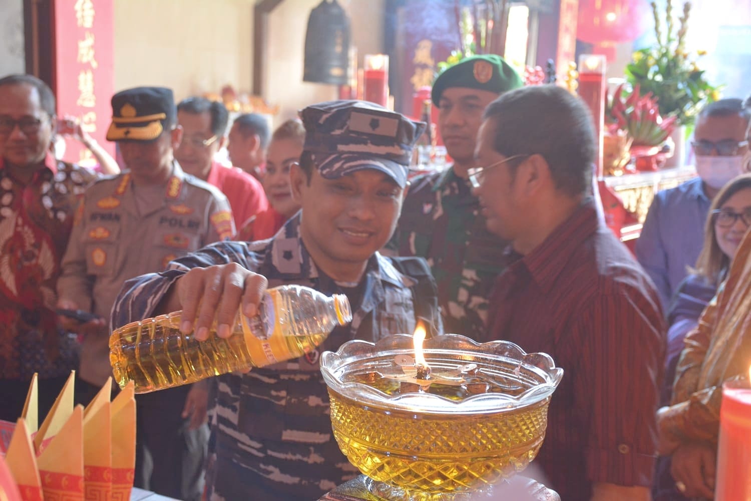 Komandan Pangkalan TNI Angkatan Laut (Danlanal) Semarang Kolonel Marinir Hariyono Masturi, M. Tr. Hanla., M. M., diwakili oleh Pasintel Lanal Semarang Mayor Laut (E) Sudianto bersama Forkopimda Kota Semarang melaksanakan Kunjungan Ke Beberapa Kelenteng Dalam Rangka Menjaga Terpeliharanya Stabilitas Dan Kondusifitas Kota Semarang Menyambut Perayaan Tahun Baru Imlek Tahun Kelinci Air 2574/2023 M. Minggu (22/1/2023).