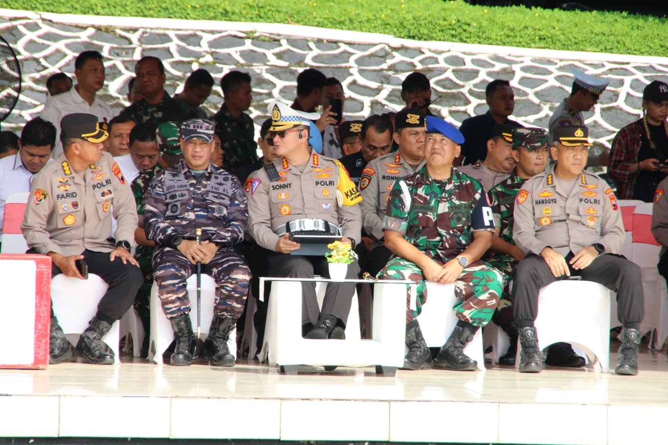 Komandan Lanal Semarang Kolonel Laut (E) Joko Andriyanto, S.T., M.Tr. Hanla., M.A.P. menghadiri Apel Gelar Pasukan dalam rangka Pengamanan Hari Raya Idul Fitri 1445 M Gabungan Satgasopsda Jateng dan Satgas Opsrestabes Semarang tahun 2024 bertempat di Lapangan Parade Kodam IV/Diponegoro, Banyumanik, Semarang, Rabu, (03/04/2024).