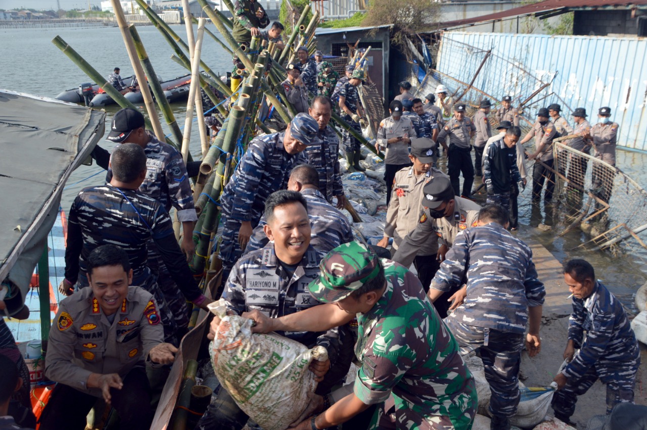 Selain prajurit Lanal Semarang, bantuan personel dan peralatan juga didatangkan dari Lantamal V Surabaya, Yonmarhanlan V Surabaya, Lanal Tegal dan Lanal Yogya. Setidaknya ada seratus lebih prajurit TNI AL yang sudah dikerahkan bersama sama sinergi dengan aparat keamanan lainnya baik dari Kodim 0733 / KS, Polrestabes Semarang, Polairud dan para relawan serta Pemerintah Daerah untuk bahu membahu mengangkut karung berisi pasir guna menutup tanggul yang jebol.