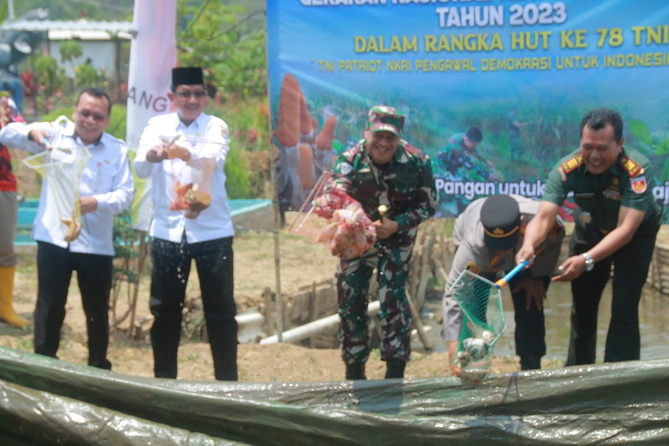 Bersama Forkopimda Kabupaten Kendal Komandan Pangkalan TNI Angkatan Laut (Danlanal) Semarang Kolonel Laut (E) Joko Andriyanto, S.T., M.Tr. Hanla., M.A.P., melaksanakan Gerakan Nasional Ketahanan Pangan Tahun 2023 tepatnya di Dusun Simbang, Desa Bebengan, Kecamatan Boja, Kabupaten Kendal, sekaligus menyaksikan Puncak Acara Ketahanan Pangan Tahun 2023 secara Virtual dengan Wakil Presiden Republik Indonesia Prof. Dr. (HC) K.H. Ma’ruf Amin yang mengangkat tema ” Ketahanan Pangan Untuk Indonesia Maju” di laksanakan secara serentak oleh satuan jajaran TNI di 384 titik/lokasi. Rabu (1/11/2023)