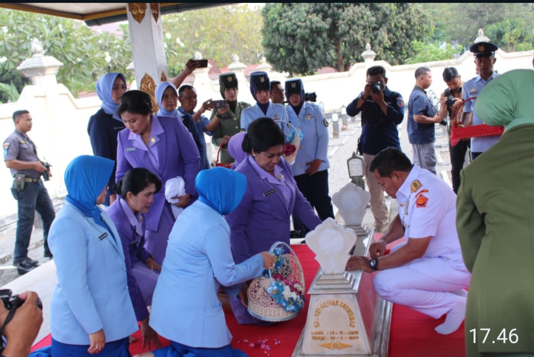 Jelang Peringatan HUT TNI Ke-78 Tahun 2023, Komandan Pangkalan TNI Angkatan Laut (Danlanal) Yogyakarta Lantamal V Kolonel Laut (KH/W) Dr. Devi Erlita, M.M., M.Tr.Hanla mengikuti kegiatan Ziarah Rombongan Panglima TNI Laksamana Yudo Margono beserta Ibu Vero Yudo Margono ziarah ke Makam Pahlawan Nasional Panglima Besar Jenderal Soedirman di TMP Kusumanegara, Semaki, Yogyakarta.