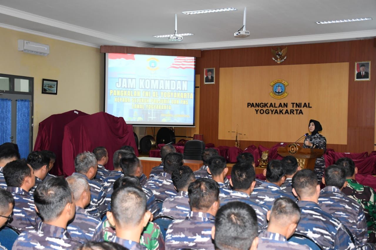 Komandan Pangkalan TNI Angkatan Laut Yogyakarta Kolonel Laut (KH/W) Dr. Devi Erlita, M.M., M.Tr.Hanla Melaksanakan Jam Komandan kepada seluruh prajurit dan PNS Lanal Yogyakarta di Aula Mako Lanal Yogyakarta.