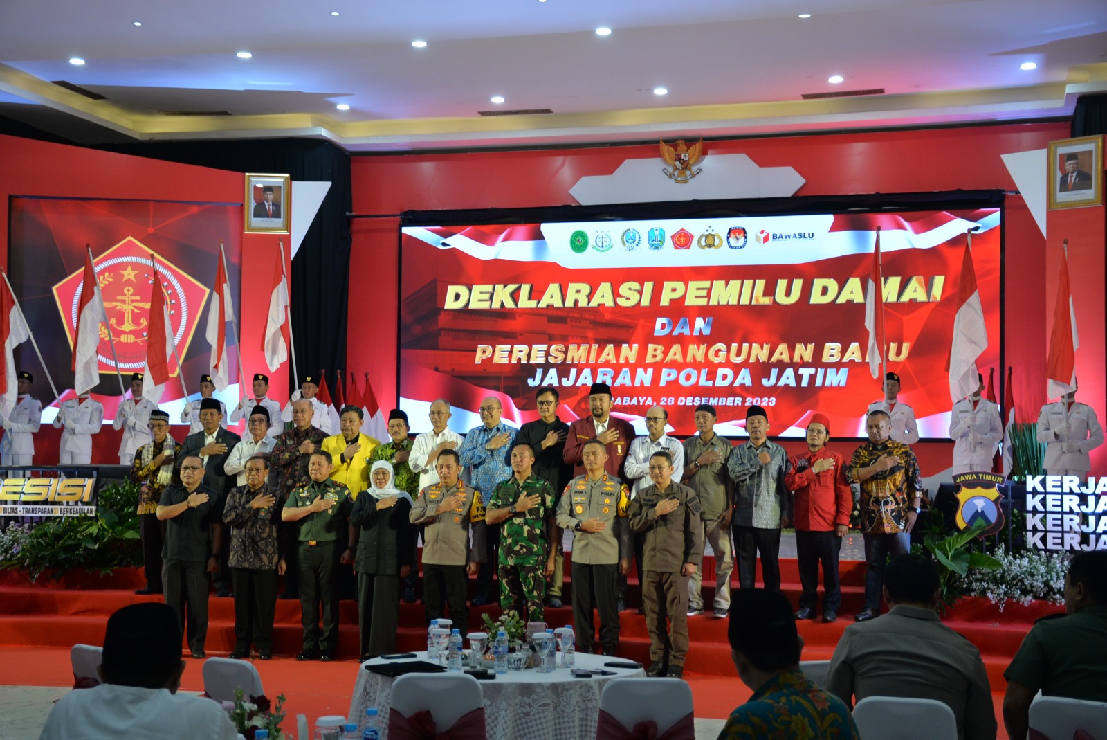 Dalam acara tersebut juga dilakukan Pembacaan naskah Deklarasi pemilu aman dan damai tahun 2024 dari perwakilan tokoh pemuda, tokoh kemasyarakatan, tokoh agama serta perwakilan media se Jawa Timur yang dipimpin oleh ketua MUI Jatim KH. Moh. Hasan Mutawakkil Alallah Dilanjutkan dengan penanda-tanganan deklarasi dan gema doa bersama oleh lintas agama.