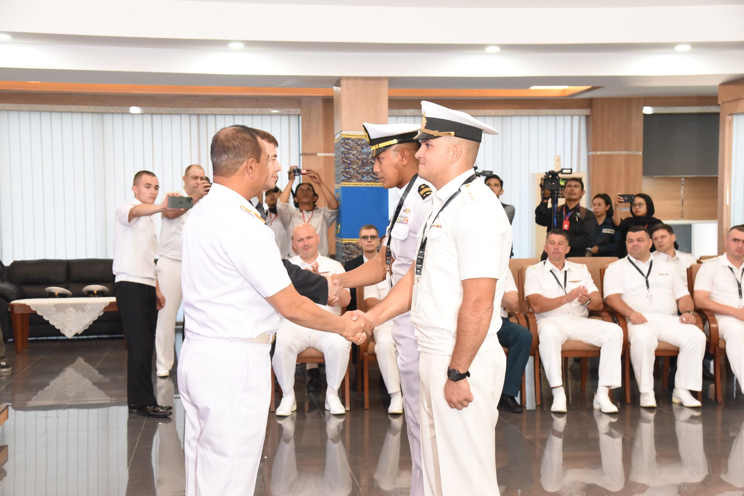 Komandan Pangkalan Utama TNI AL (Danlantamal) V Laksma TNI Dr. Arya Delano, S.E., M.Pd., M.Han., menghadiri pembukaan latihan bersama (Latma) Orruda dan Submarine Visit yang digelar di Lounge Mojopahit, Koarmada II, Ujung Surabaya. Senin (04/11/2024)