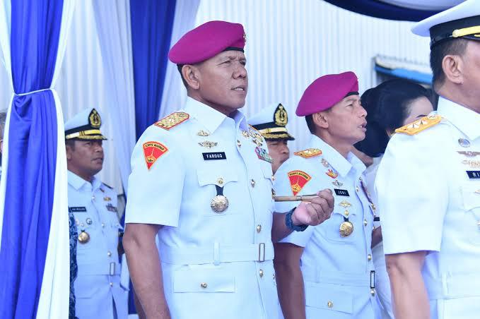 Komandan Pangkalan Utama TNI AL (Danlantamal) V Brigjen TNI Marinir Joni Sulistiawan, S. H., M. Han didampingi Ketua Koordinator Cabang (Korcab) V Daerah Jalasenastri Armada (DJA) II Ny. Heny Joni Sulistiawan menghadiri upacara peringatan Hari Armada RI Ke-78 Tahun 2023 di Dermaga Sunda Satuan Kapal, Pondok Dayung Jakarta Utara. Selasa (05/12/2023)