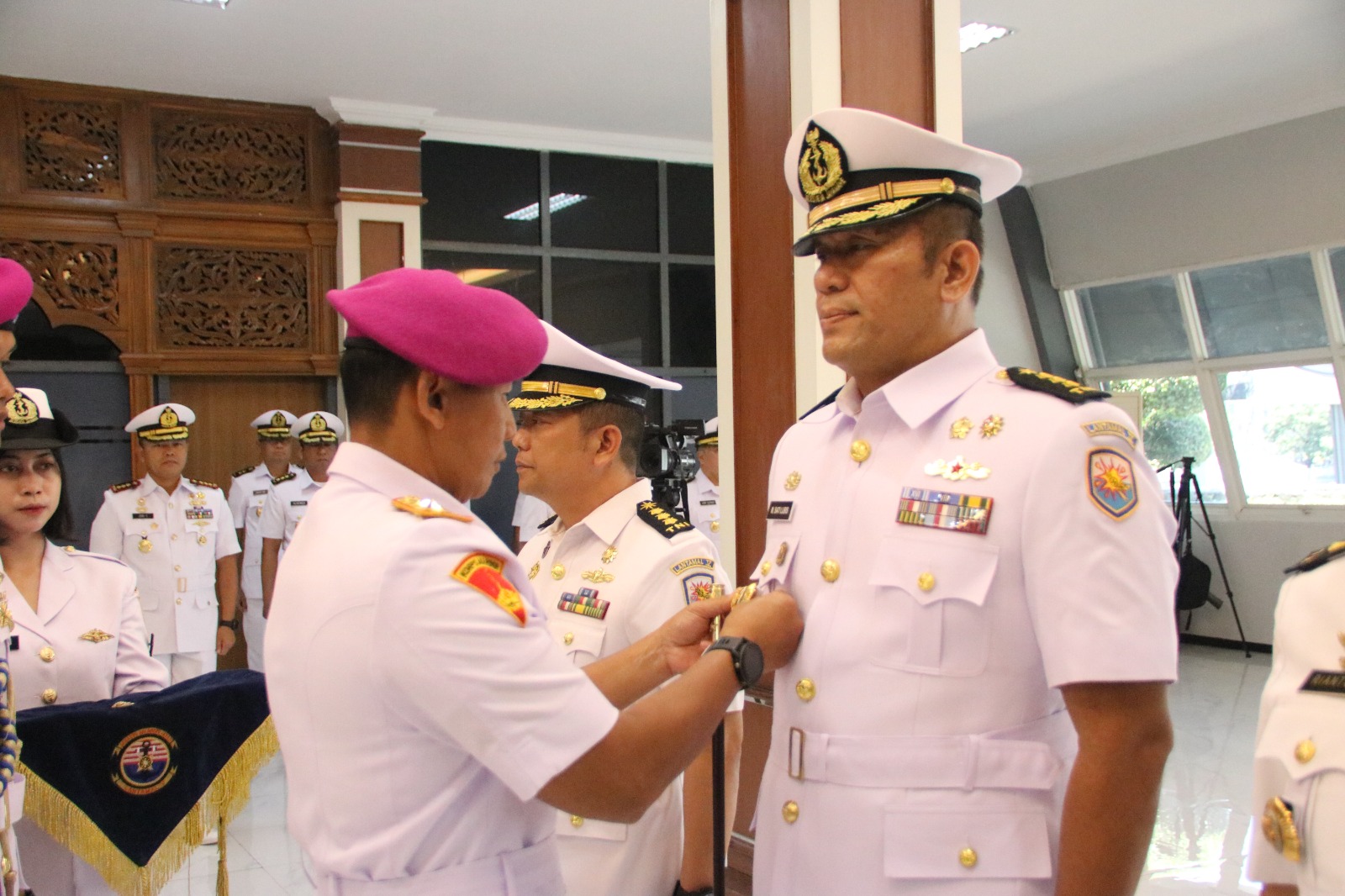 Komandan Pangkalan Utama TNI AL (Danlantamal) V Brigjen TNI (Mar) Joni Sulistiawan, S.H., M.Han memimpin Acara Serah terima jabatan (Sertijab) Asisten Operasi (Asops) Danlantamal V dan Penyerahan Jabatan Kepala Rumah Sakit (Karumkit) dr. Oepomo Lantamal V di Loby Mako Lantama V, Perak, Surabaya. Selasa (03/09/2024)