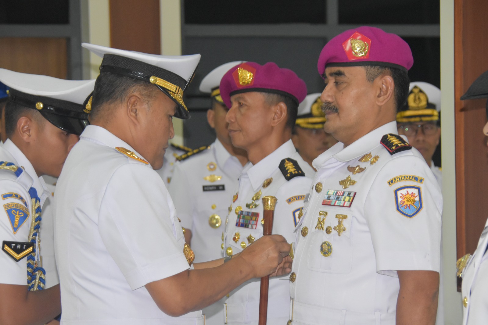 Komandan Pangkalan Utama TNI AL (Danlantamal) V Laksamana Pertama TNI Supardi memimpin serah terima jabatan empat jabatan strategis di lingkungan Lantamal V yaitu Wadan Lantamal V, Asisten Perencanaan (Asrena) Danlantamal V, Karumkital Dr. Oepomo dan Komandan Pangklan TNI AL (Danlanal) Banyuwangi yang bertempat di Mako Lantamal V Perak Surabaya, (01/04/2023).