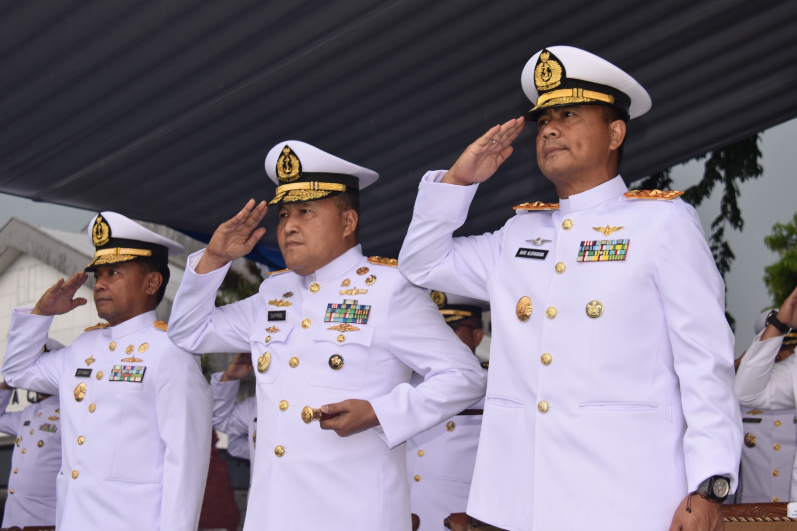 Komandan Pangkalan Utama TNI Angkatan Laut (Danlantamal) V Laksamana Pertama TNI Supardi menyaksikan Upacara Militer pelantikan 936 Siswa Pendidikan Pertama Tamtama (Dikmata) TNI AL Angkatan XLII Gelombang 2 Tahun Anggaran 2022. Bertindak selaku Inspektur Upacara Komandan Kodiklatal Letnan Jenderal TNI Marinir Suhartono. Bertempat di Lapangan Laut Maluku Kodiklatal, Bumimoro Surabaya, (30/03/2023).