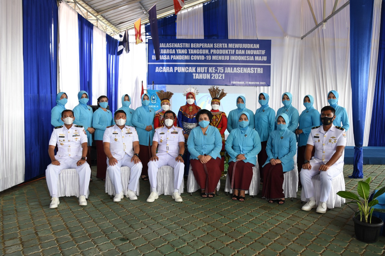 Komandan Lantamal XII Brigjen TNI (Mar) Andi Rukman selaku Pembina Jalasenastri Korcab XII DJA I, didampingi Ketua Korcab XII DJA I Ny. Noni Andi Rukman mengikuti acara peringatan Hari Ulang Tahun ke 75 Jalasenastri Tahun 2021, yang dilaksanakan di Mako Lantamal XII Jl. Komyos Jeruju No 1 Kota Pontianak Kalimantan Barat, Jumat (27/08/2021).