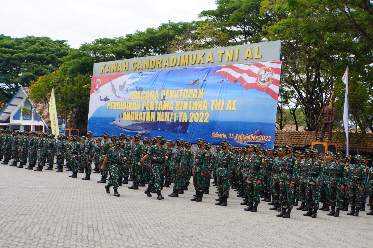 Komandan Pusat Latihan Pendidikan Dasar Militer (Danpuslatdiksarmil ) Kodiklatal, Kolonel Laut (P) Irwan S.P. Siagian resmi menutup Pendidikan Pertama Bintara (Dikmaba) TNI AL Angkatan XLII gelombang 1 tahun 2022, dalam upacara penutupan yang berlangsung di Lapangan Kawah Candradimuka Puslatdiksarmil , Juanda Sidoarjo pada Kamis (15/9).