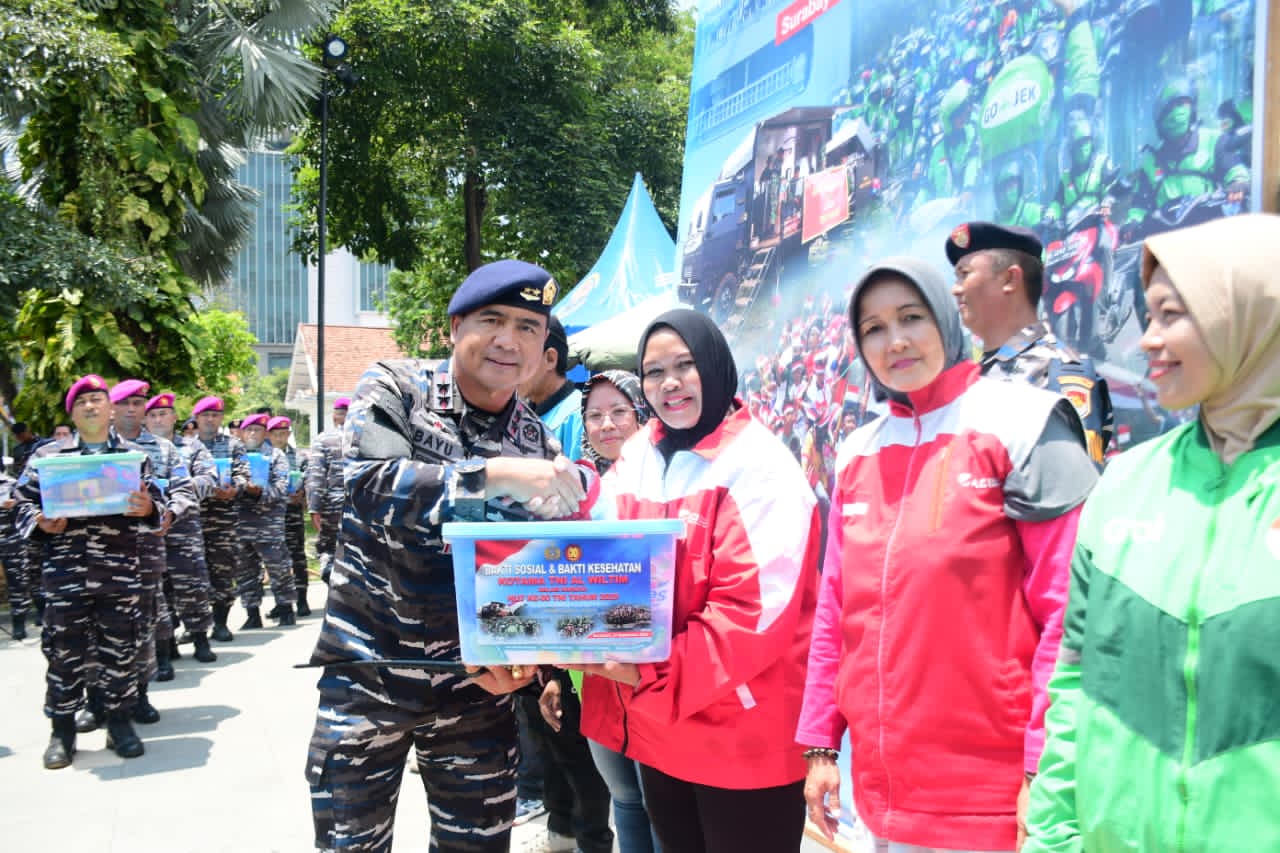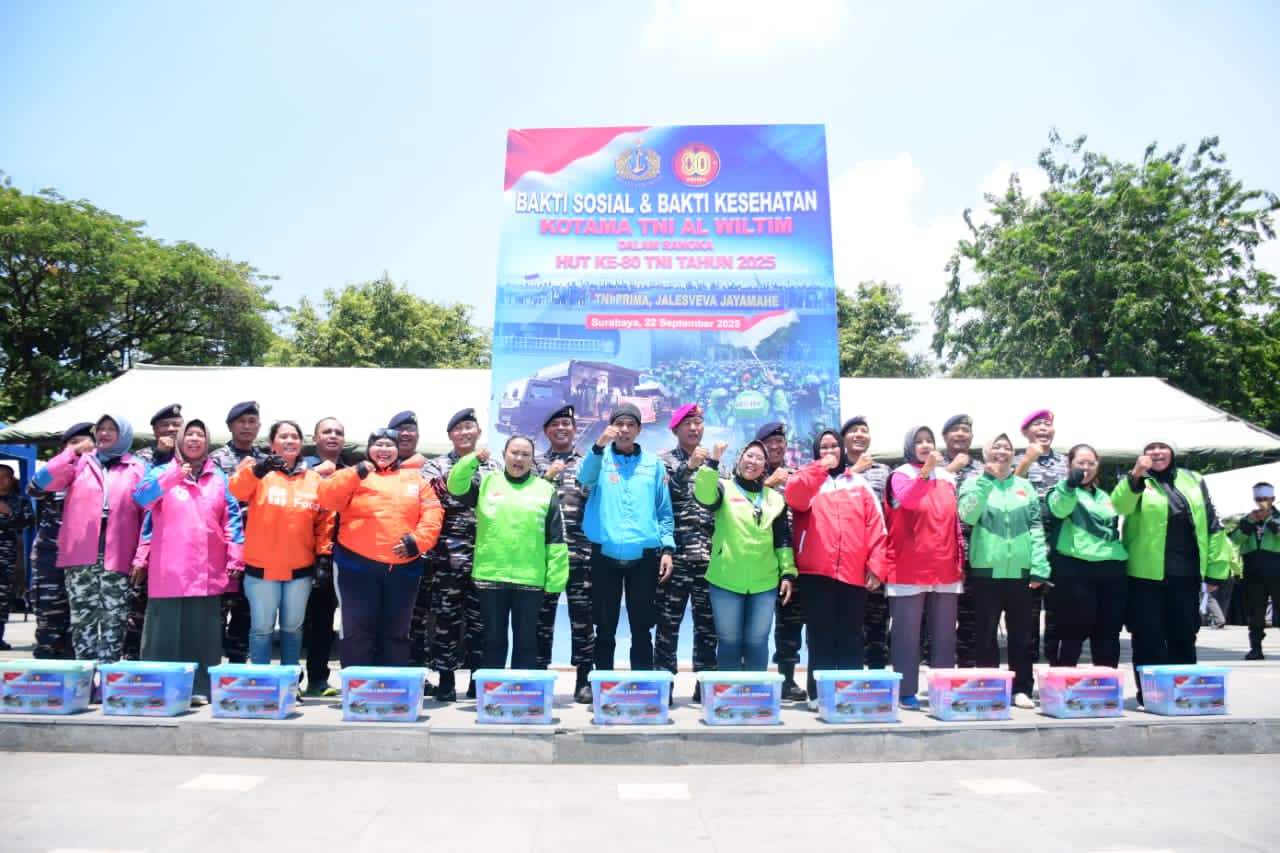 Pada kegiatan Bakti Sosial dan Bakti Kesehatan Kotama TNI AL Wilayah Timur dalam rangka HUT ke-80 TNI Tahun 2025 ini, diisi dengan pemberian paket sembako kepada 409 orang dari masyarakat umun dan Komunitas Ojek Online Surabaya.