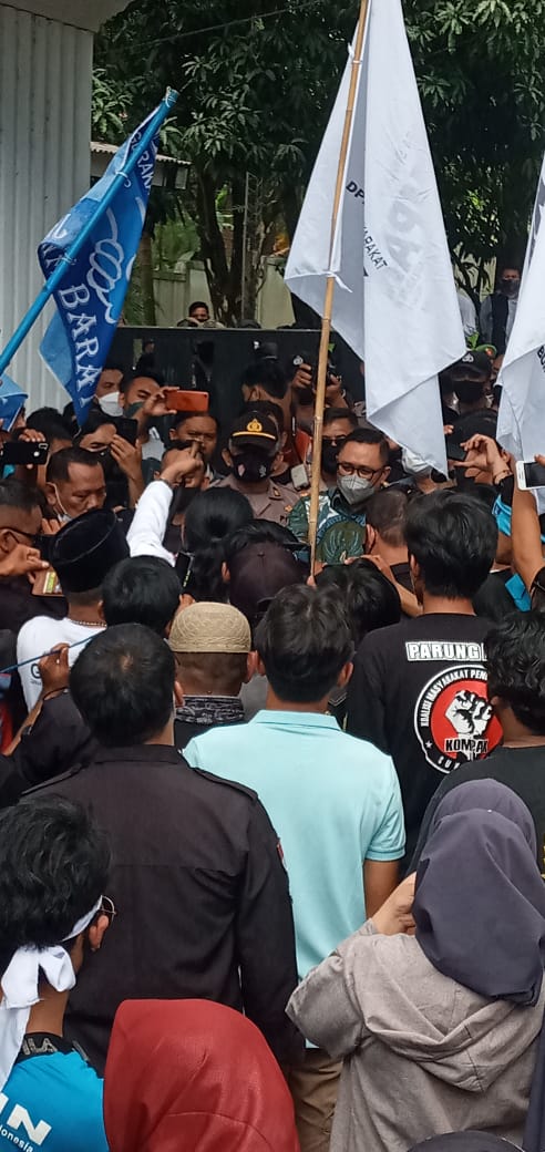 Pergerakan massa yang dikomandoi oleh Hakim Adonara itu menuntut agar Ketua DPRD menemui mereka di luar gerbang gedung DPRD untuk mendengarkan aspirasi dan tuntutan yang akan mereka sampaikan. Akhirnya permintaan tersebut dapat terlaksana dengan hadirnya ketua DPRD Yudha Sukmagara di tengah kerumunan massa didampingi anggota DPRD Usep Wawan dari Fraksi Gerindra, meskipun kehadiran mereka agak sedikit terlambat