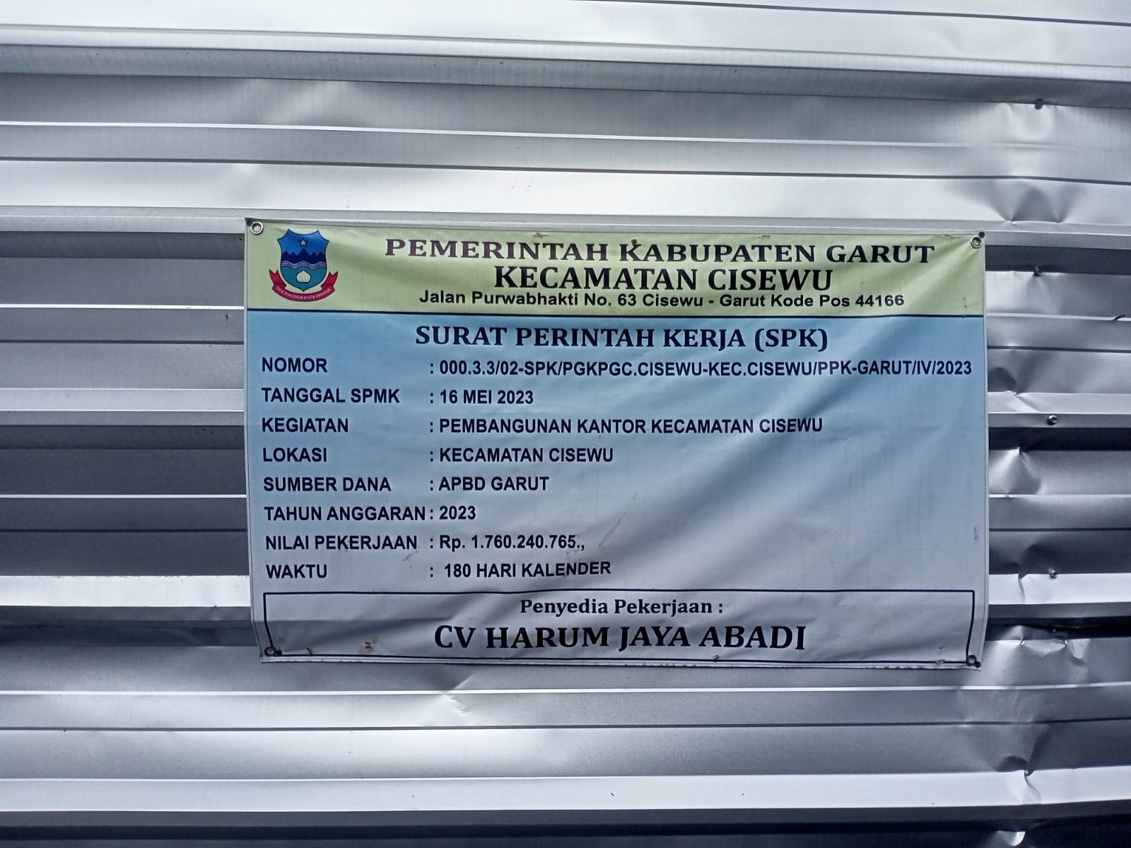 “Diketahui anggaran pembangunan kantor Kecamatan Cisewu tersebut menghabiskan Rp.1,760.240.765,-“.
