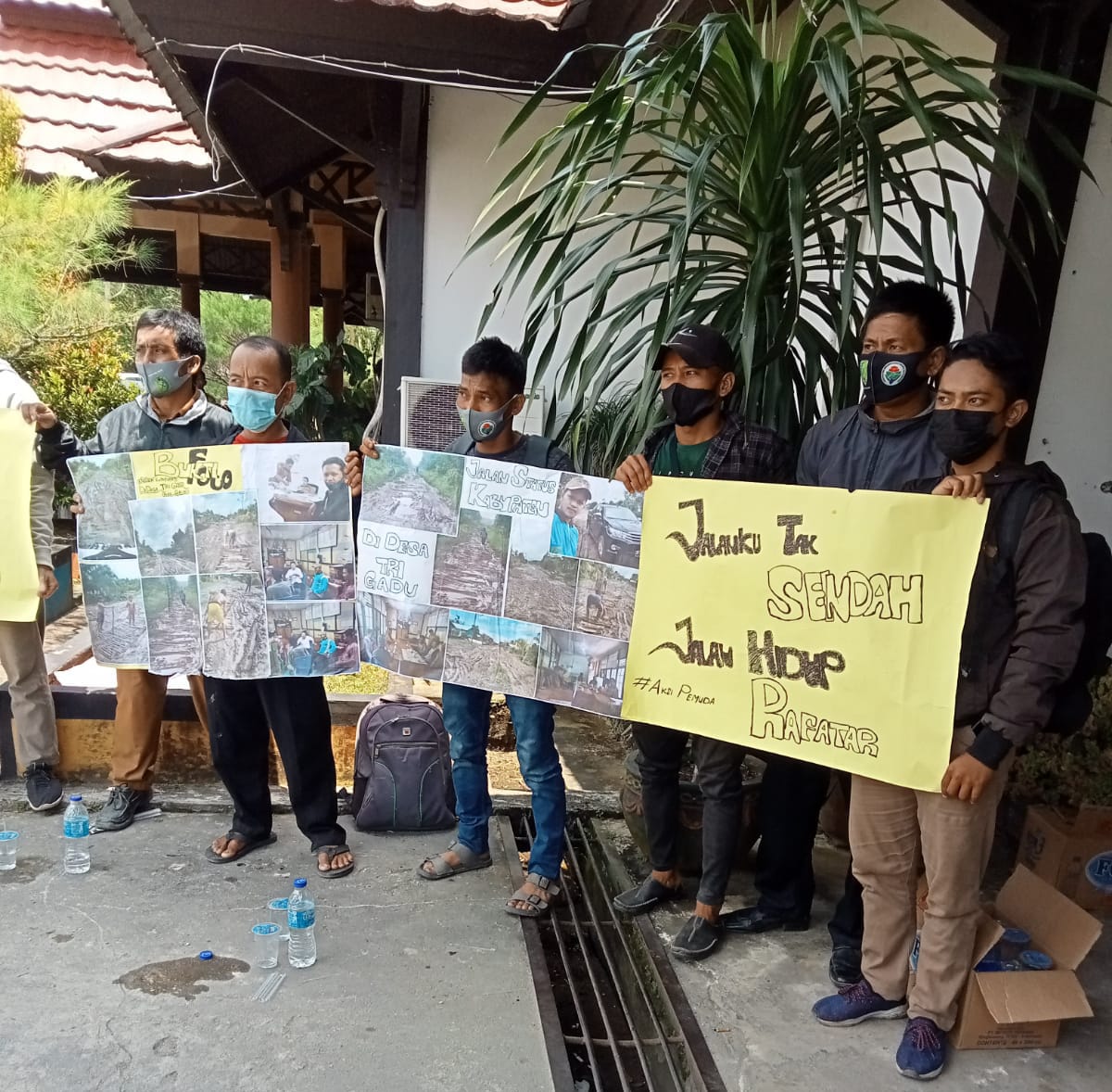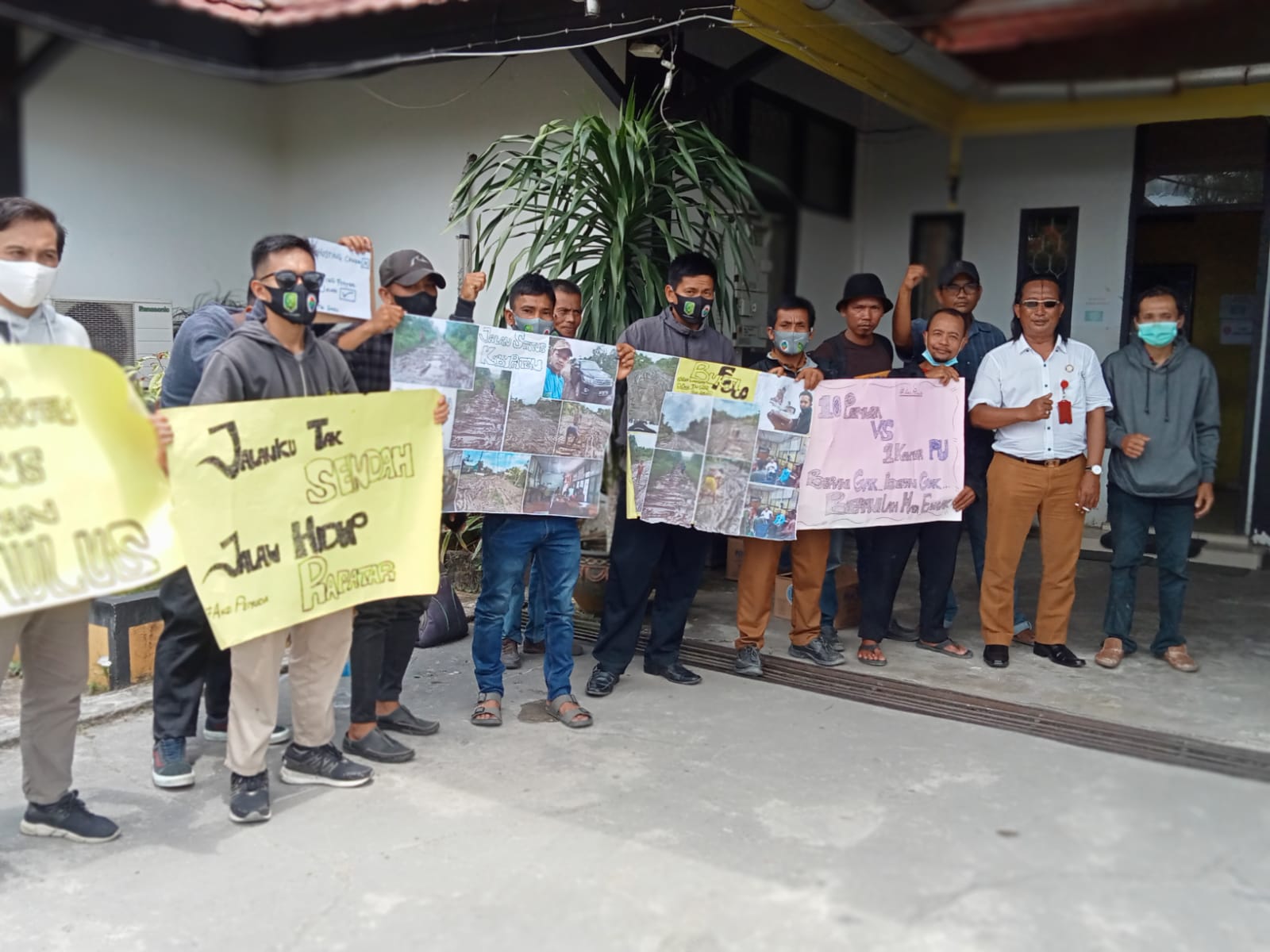 Kepala Desa/Kades Sugianto Spd.i., bersama Puluhan warga Dusun Semanjak Desa Trigadu Kecamatan Galing Kabupaten Sambas Kalimantan Barat. Mendatangi Kantor Dinas Pekerjaan Umum Penataan Ruang/ PUPR Kabupaten Sambas pada hari Senin tgl 11/10/2021. Mereka datang guna untuk mempertanyakan usulan penimbunan Jalan Desa Trigadu yang belum terealisasi dan mirisnya titik Proyek jalan dialihkan kelokasi daerah lain .