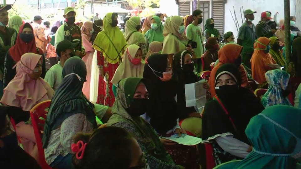 Menurut, Fahmi Kepala Desa Kapur kerumunan terjadi karena penyaluran pembagian bantuan sosial di pusatkan satu tempat di Desa Kapur dari tiga desa, yakni Desa Mekar Baru, Desa Madu Sari, Desa Ambanga” Ujarnya