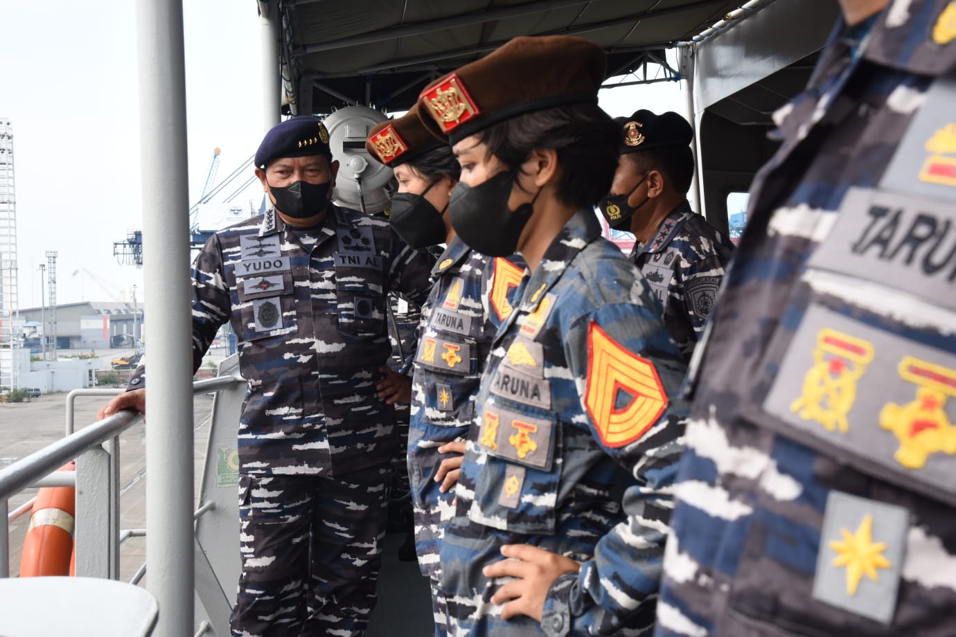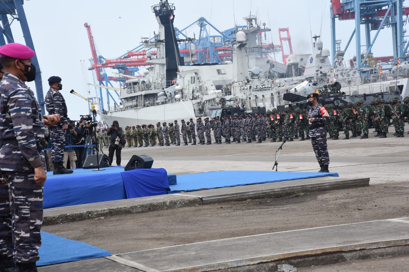 Gubernur Akademi Angkatan Laut (AAL), Mayjend TNI (Mar) Nur Alamsyah, S.E., M.M., M.Tr (Han) bersama Taruna AAL Tingkat lV Angkatan ke-67 menghadiri Apel Gelar Pasukan Latihan Operasi Amfibi (Lotopsfib) Armada Jaya TA. 2021 yang dilaksanakan di Dermaga JICT Tanjung Priok, Jakarta Utara, Jum’at 22 Oktober 2021.