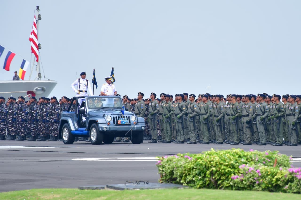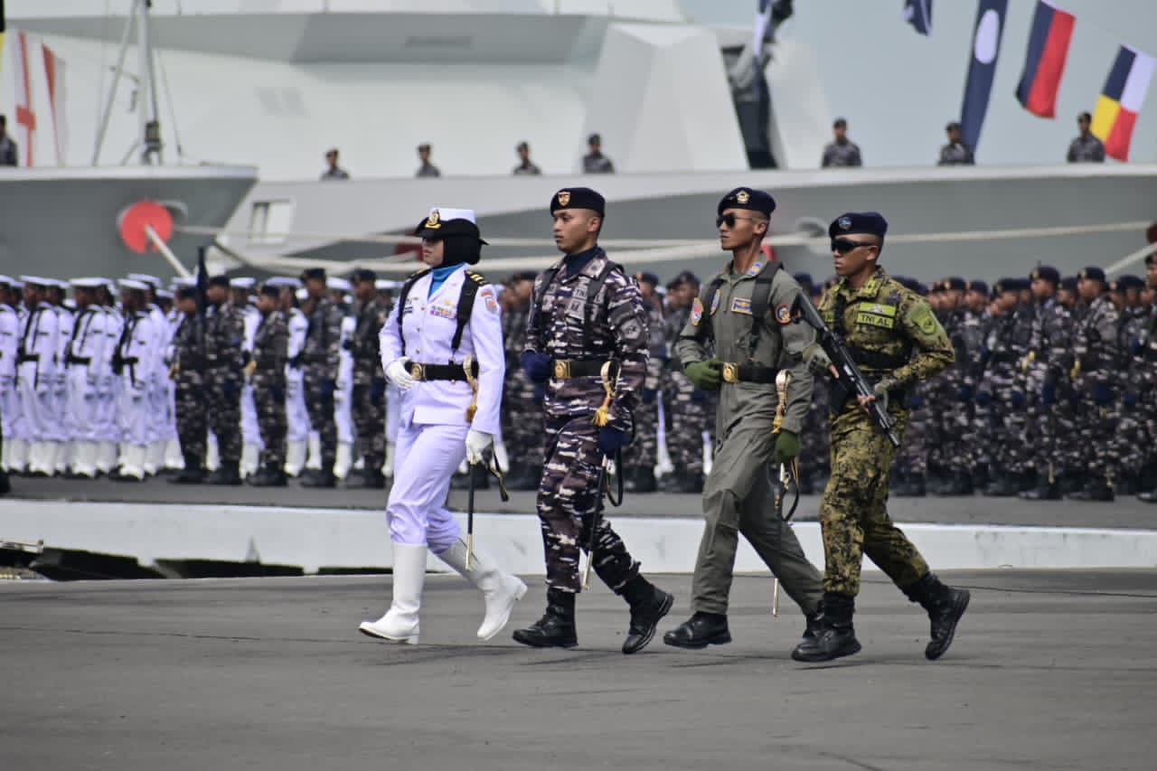 Upacara yang berlangsung di Dermaga Madura ini, diikuti lima Brigade pasukan yang personelnya berasal dari berbagai satuan di jajaran TNI AL, Maritim, Mahasiswa dan Komcad.