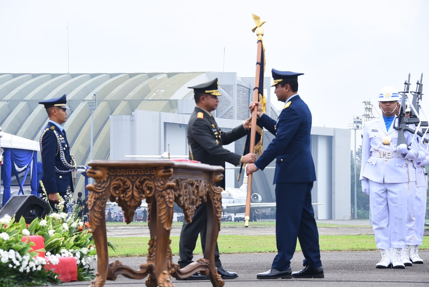 Panglima TNl Jenderal TNl Agus Subiyanto memimpin jalannya Sertijab KSAU dari Marsekal TNl Fadjar Prasetyo kepada Marsekal TNl Tonny Harjono.