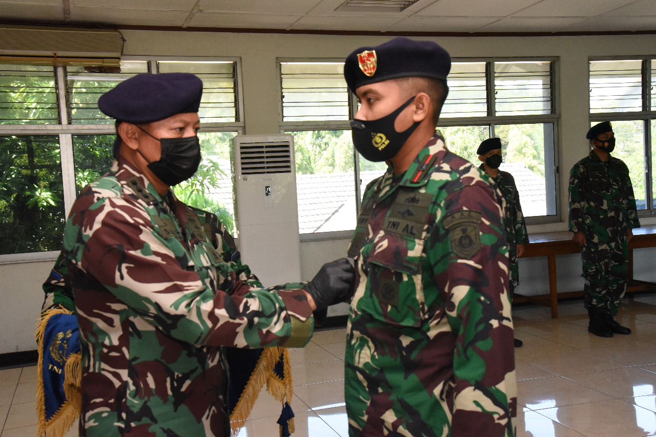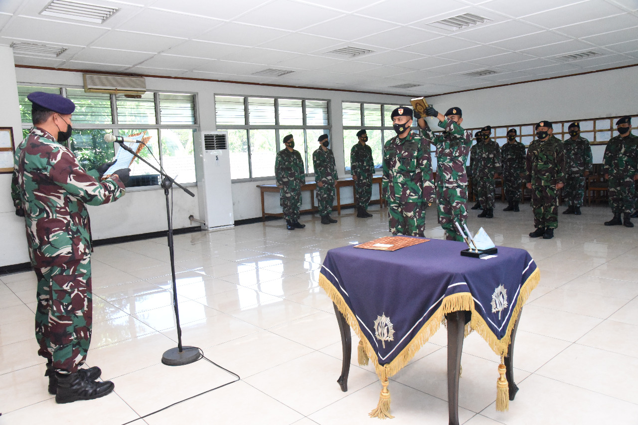 Direktur Pendidikan Akademi Angkatan Laut (Dirdik AAL), Kolonel Laut (P) Sawa, S.E., M.M. memimpin upacara pengukuhan jabatan Komandan KAL Kadet VIII-06 yang dilangsungkan di gedung Perpustakaan, Kesatrian AAL Bumimoro, Surabaya, Senin (10/5).