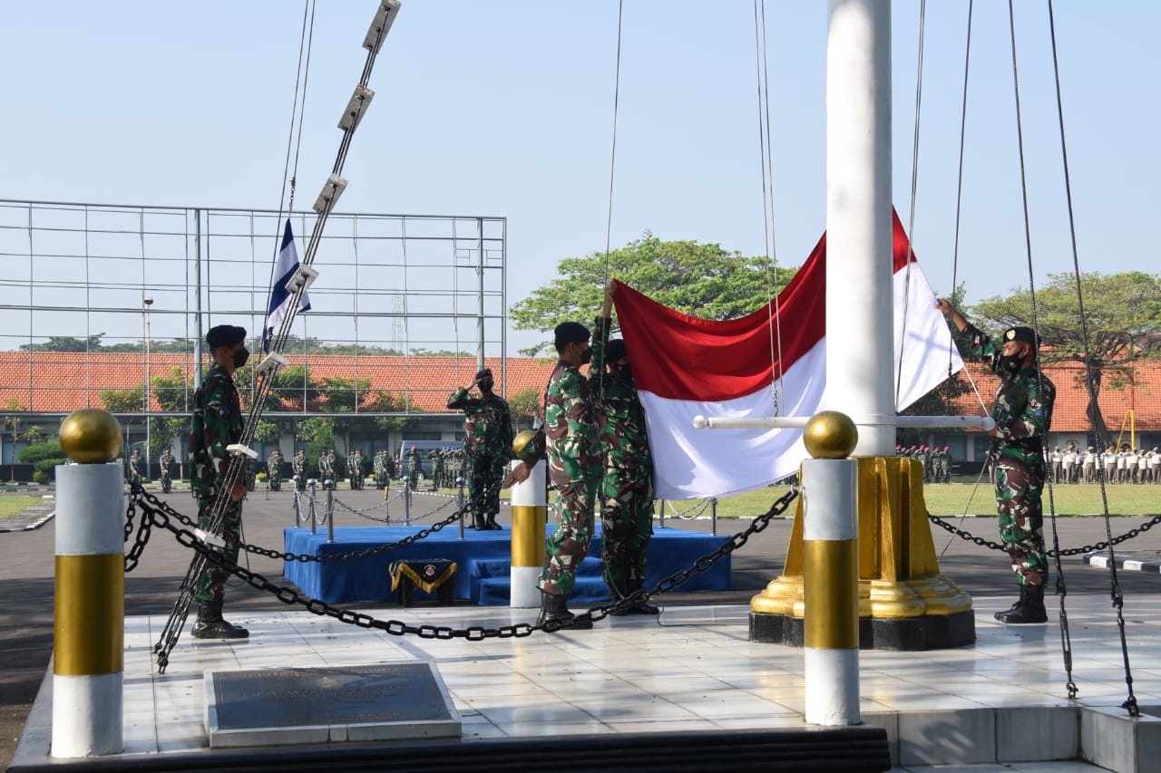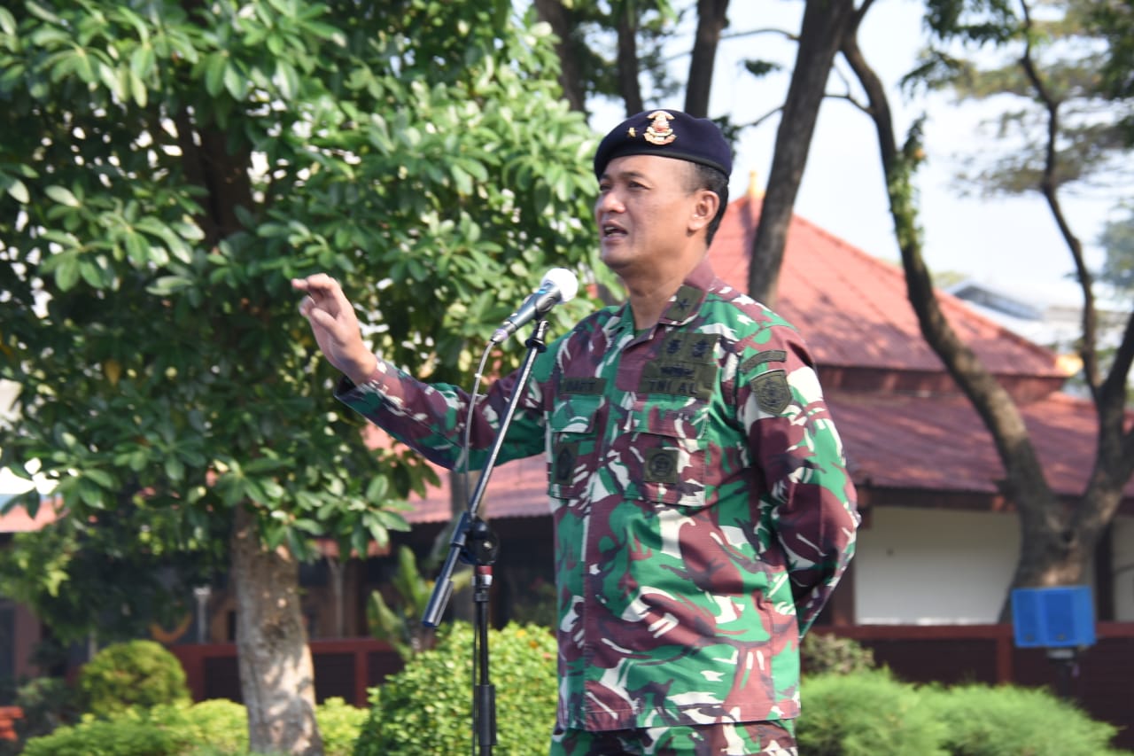 Seluruh Prajurit dan Pegawai Negeri Sipil (PNS) Komando Pembinaan Doktrin, Pendidikan dan Latihan TNI Angkatan Laut (Kodiklatal), serta prajurit siswa yang sedang menempuh pendidikan di Kodiklatal melaksanakan upacara bendera dipimpin Direktur Pengkajian dan Pengembangan (Dirjianbang) Kodiklatal Laksamana Pertama TNI Dafit Santoso di lapangan Laut Maluku Kesatrian Bumimoro Kodiklatal, Senin (18/7).