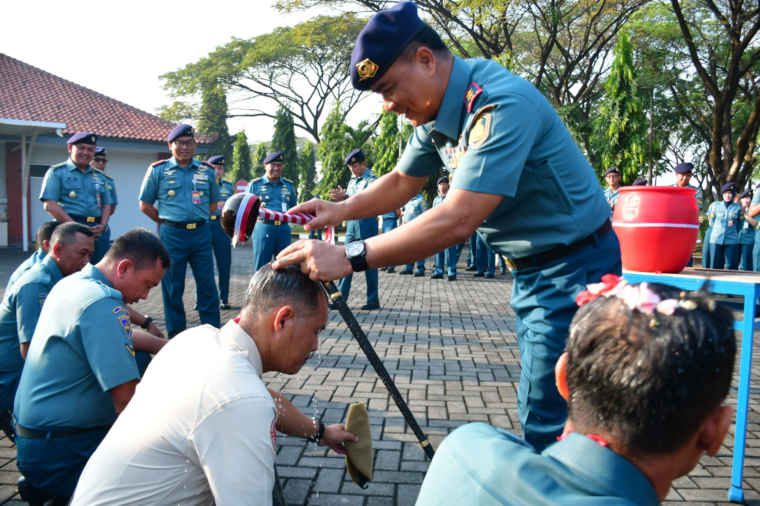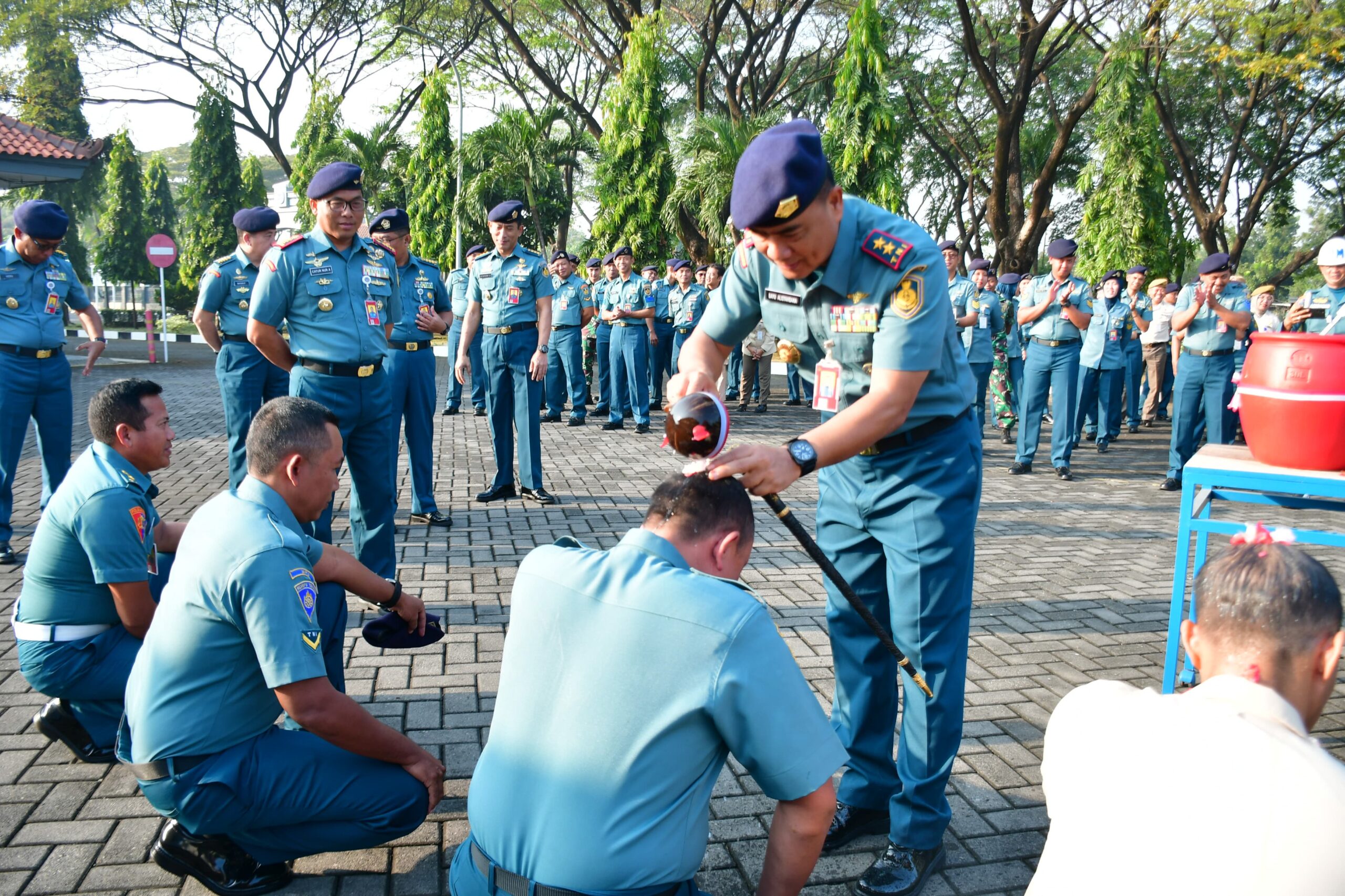 Setelah disiram air kembang, delapan personel Mako Pusat Penerbangan TNl Angkatan Laut (Puspenerbal) menerima ucapan selamat ulang tahun edisi bulan Juli 2025 dari Komandan Puspenerbal, Laksda TNl Bayu Alisyahbana yang digelar usai Apel Pagi di Lapangan Apel Mako Puspenerbal, Juanda, Sidoarjo, Senin (14/7/2025).