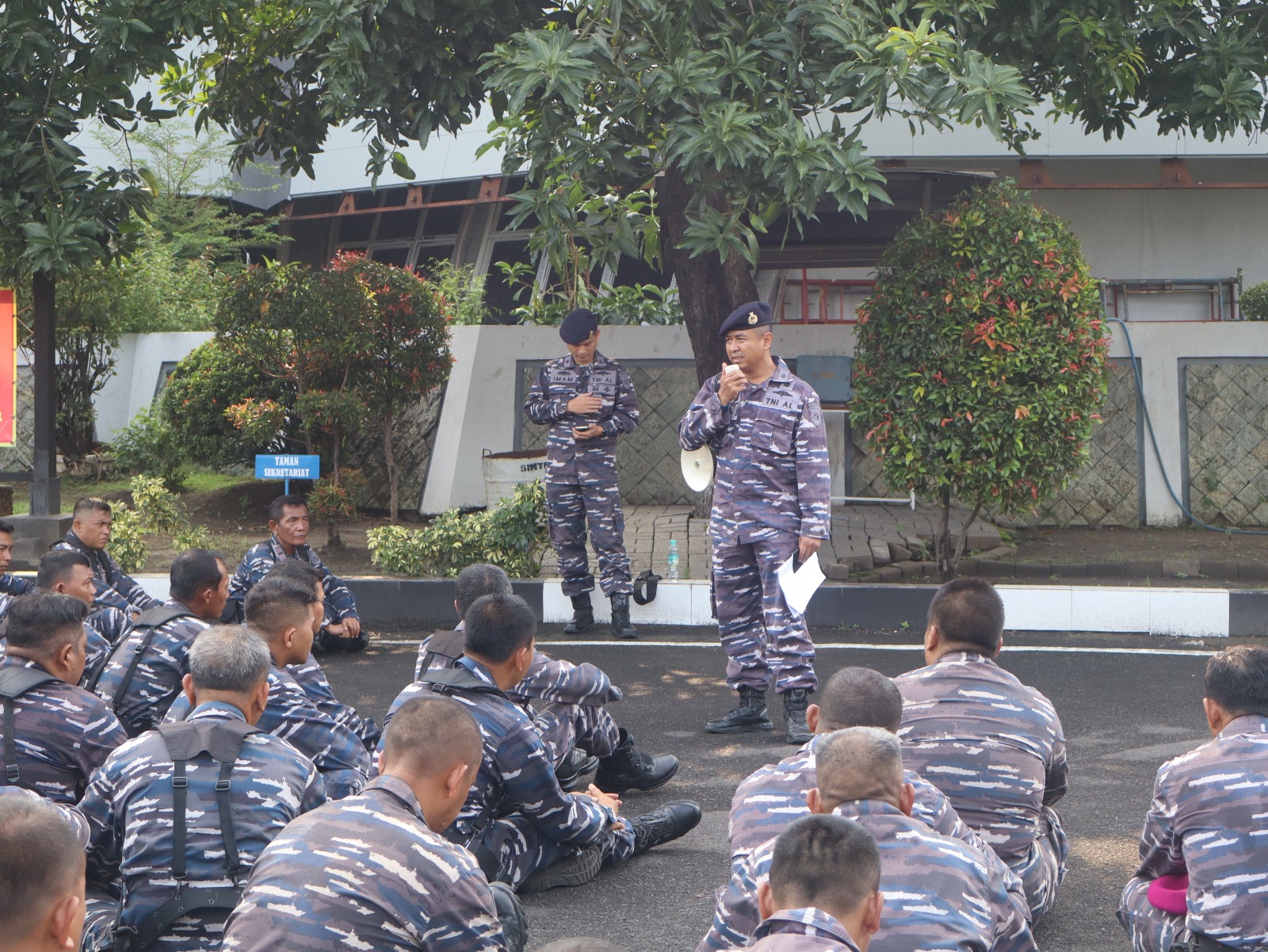 Kepala Dinas Hukum (Kadiskum) Pangkalan Utama TNI AL (Lantamal) V Letkol Laut (H) Harjanto, S. H., secara langsung memberikan pembekalan terkait pengetahuan hukum kepada 120 prajurit Pasukan Huru Hara (PHH) di depan Mako Lantamal V, Perak Surabaya. Selasa (13/02/2024).