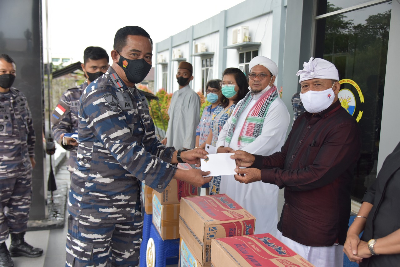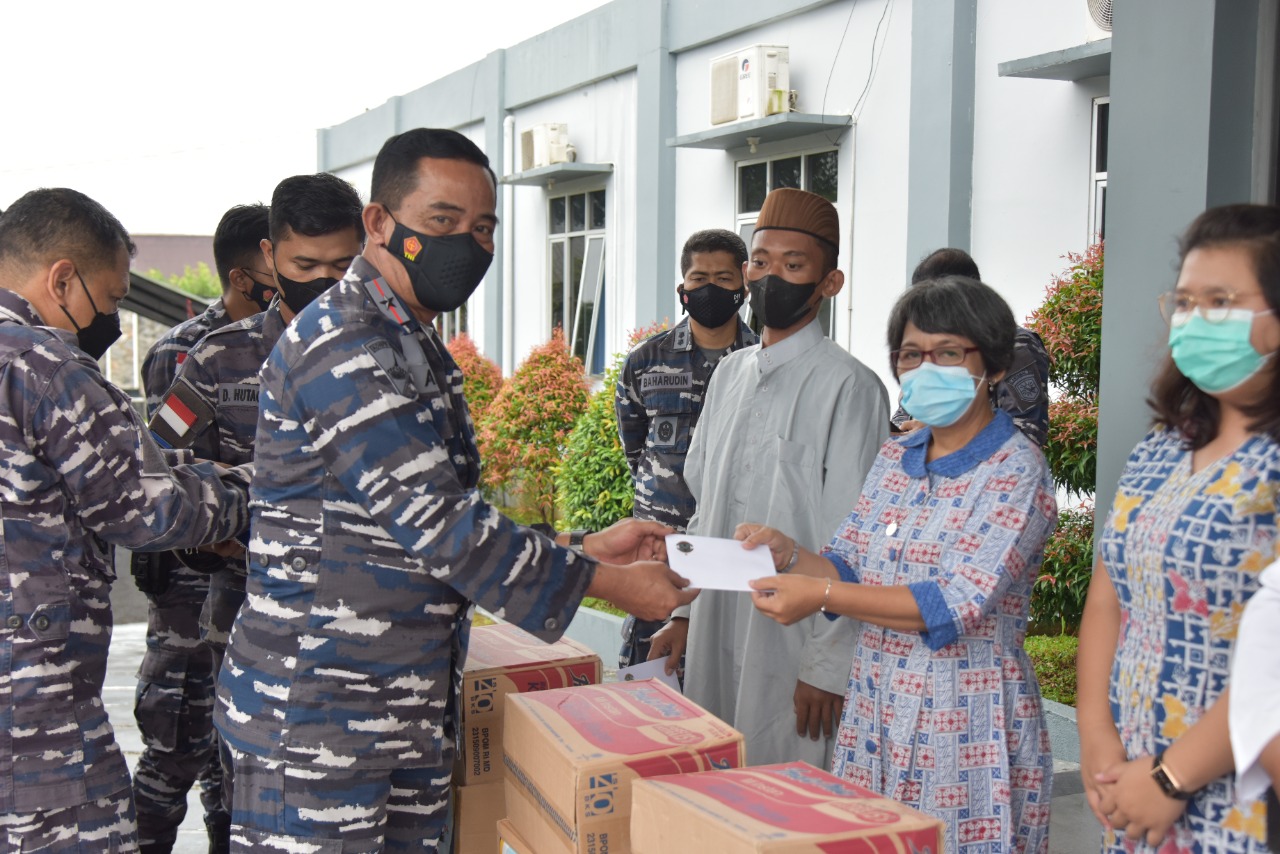 Selesai pelaksanaan Doa Bersama Lintas Agama, seluruh Tokoh Agama dan pengurus rumah ibadah yang hadir berkumpul di Lobby Utama Mako Lantamal XII guna menerima penyerahan tali asih dan sembako dari Kepala Staf Angkatan Laut, yang disampaikan oleh Danlantamal XII Brigjen TNI (Mar) Andi Rukman.