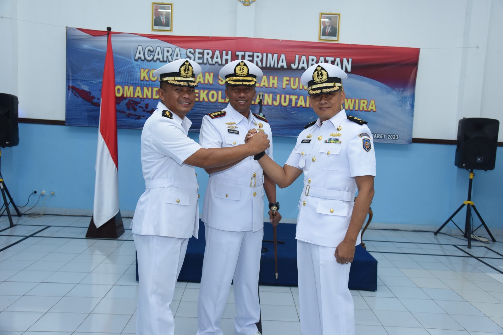 Komandan Pusat Pendidikan Lanjutan Perwira (Danpusdiklapa) Kolonel Laut (P) Ari Krisdiyanto menerima penyerahan dua jabatan komandan di jajaran Pusdiklapa, yaitu Komandan Sekolah Fungsi (Dansefung) Letkol Laut (P) I Komang Nurhadi dan Komandan Sekolah Lanjutan Perwira (Danselapa) Letkol Laut (P) Mufianto Machfud, bertempat di Aula Pusdiklapa Kodiklatal, Bumimoro Surabaya. Kamis (30/03/2023).