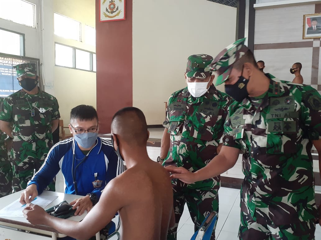 Dalam upaya menyukseskan pelaksaaan pendidikan dasar keprajuritan di Pusat Latihan Pendidikan Dasar Militer (Puslatdiksarmil) Komando Pembinaan Doktrin, Pendidikan dan Latihan TNI AL (Kodiklatal), Satuan Kesehatan (Satkes) Kodiklatal menggelar pemeriksaan kesehatan secara rutin kepada seluruh siswa Pendidikan Pertama Tamtama (Dikmata) TNI AL Angkatan XLI/1 yang dilaksanakan di Gedung Agung Puslatdiksarmil Juanda Sidoarjo, Rabu, (29/12).