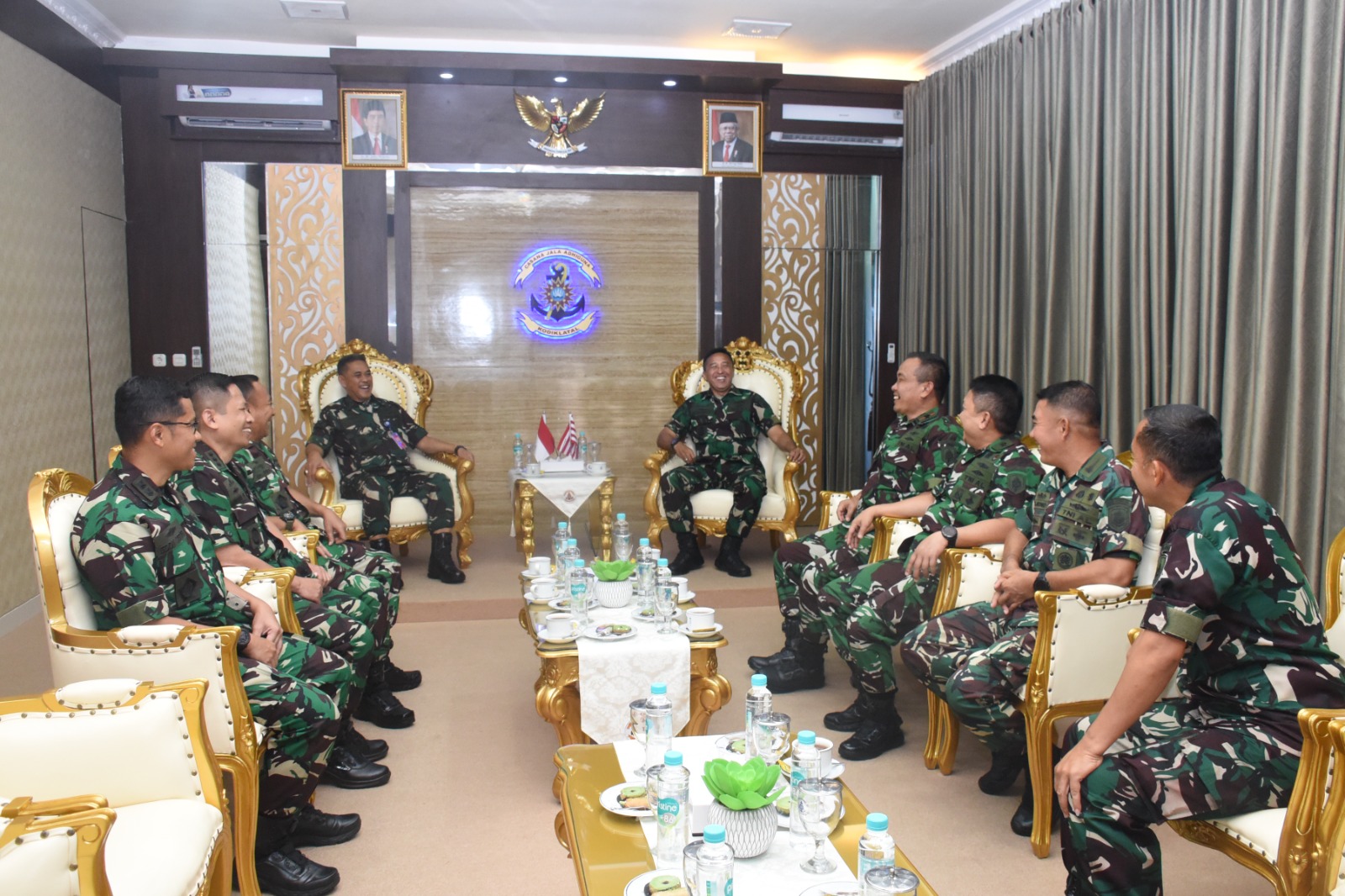 Guna mempererat soliditas dan kerjasama antara Kodiklatal dengan Rumah Sakit Pusat Angkatan Laut (RSPAL) dr. Ramelan Surabaya, Komandan Kodiklatal (Dankodiklatal) Letjen TNI Marinir Nur Alamsyah menerima kunjungan kehormatan (Courtesy Call) Kepala RSPAL dr. Ramelan Surabaya Laksma TNI dr. Sujoko Purnomo, Sp.B., bertempat di VIP Lobby Mako Kodiklatal Bumimoro Surabaya. Jumat (02/02/2024).