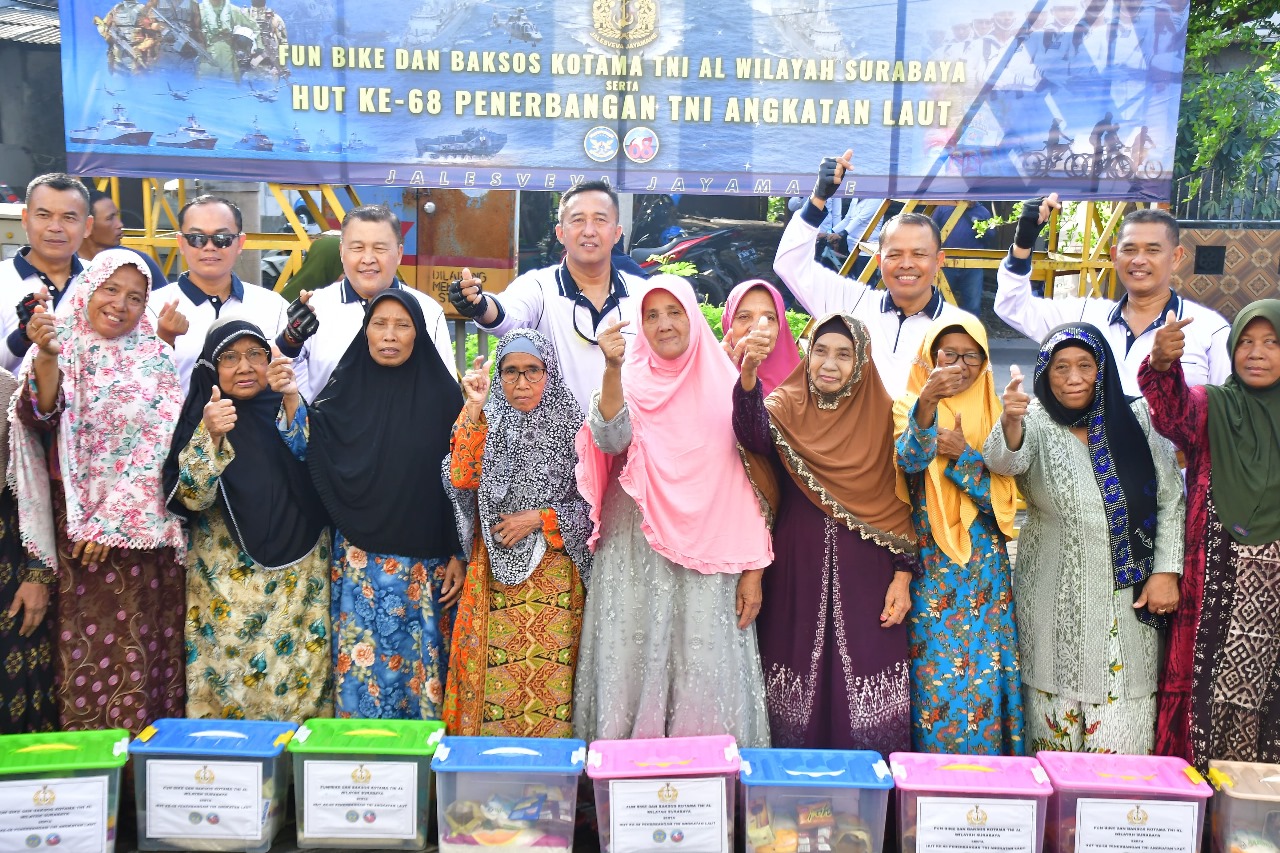 Dalam rangka pembinaan fisik, sinergitas dan silaturahmi jelang peringatan HUT ke-78 Penerbangan TNl AL 2024, Komandan Pusat Penerbangan TNl Angkatan Laut (Danpuspenerbal) Laksda TNl Sisyani Jaffar mengikuti Fun Bike sekaligus bakti sosial bersama para Pangkotama TNl AL wilayah Surabaya beserta jajarannya pada Selasa pagi (23/4/2024).
