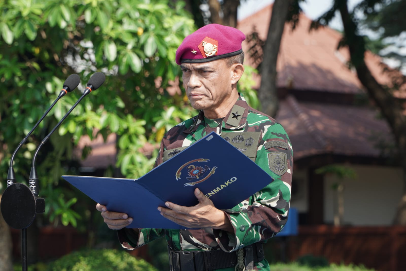 Sedangkan yang bertindak sebagai Komandan Upacara (Danup) kali ini adalah Komandan Sekolah Selam (Danseselam) Pusdiksus Kodikopsla Kodiklatal Mayor Laut (S) MZ Lerry Ferdiana.