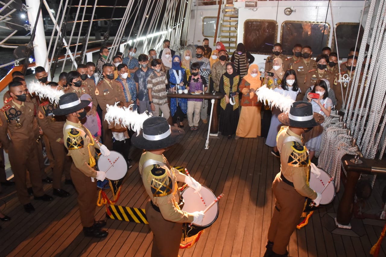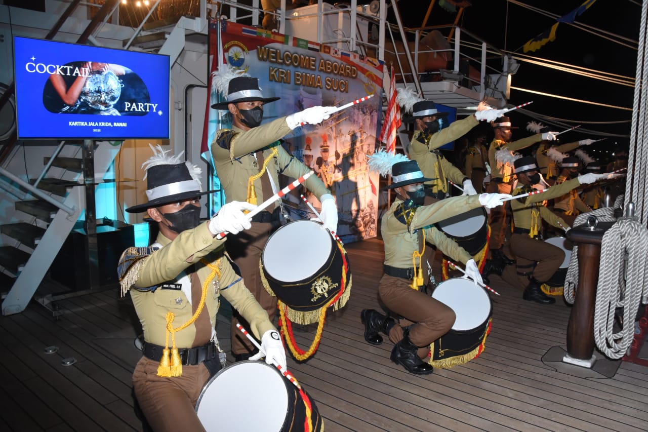 Gladak KRI Bima Suci yang terbuat dari kayu jati, menjadi panggung besar bagi Taruna Akademi Angkatan Laut (AAL) Tingkat lll Angkatan ke-68, Satuan Latihan Kartika Jala Krida (Satlat KJK) 2021 untuk menampilkan pentas seni dalam acara Cocktail Party yang dihadiri Bupati Natuna, Wan Siswandi, S.Sos., M.Msi., beserta Forkopimda Natuna tadi malam.