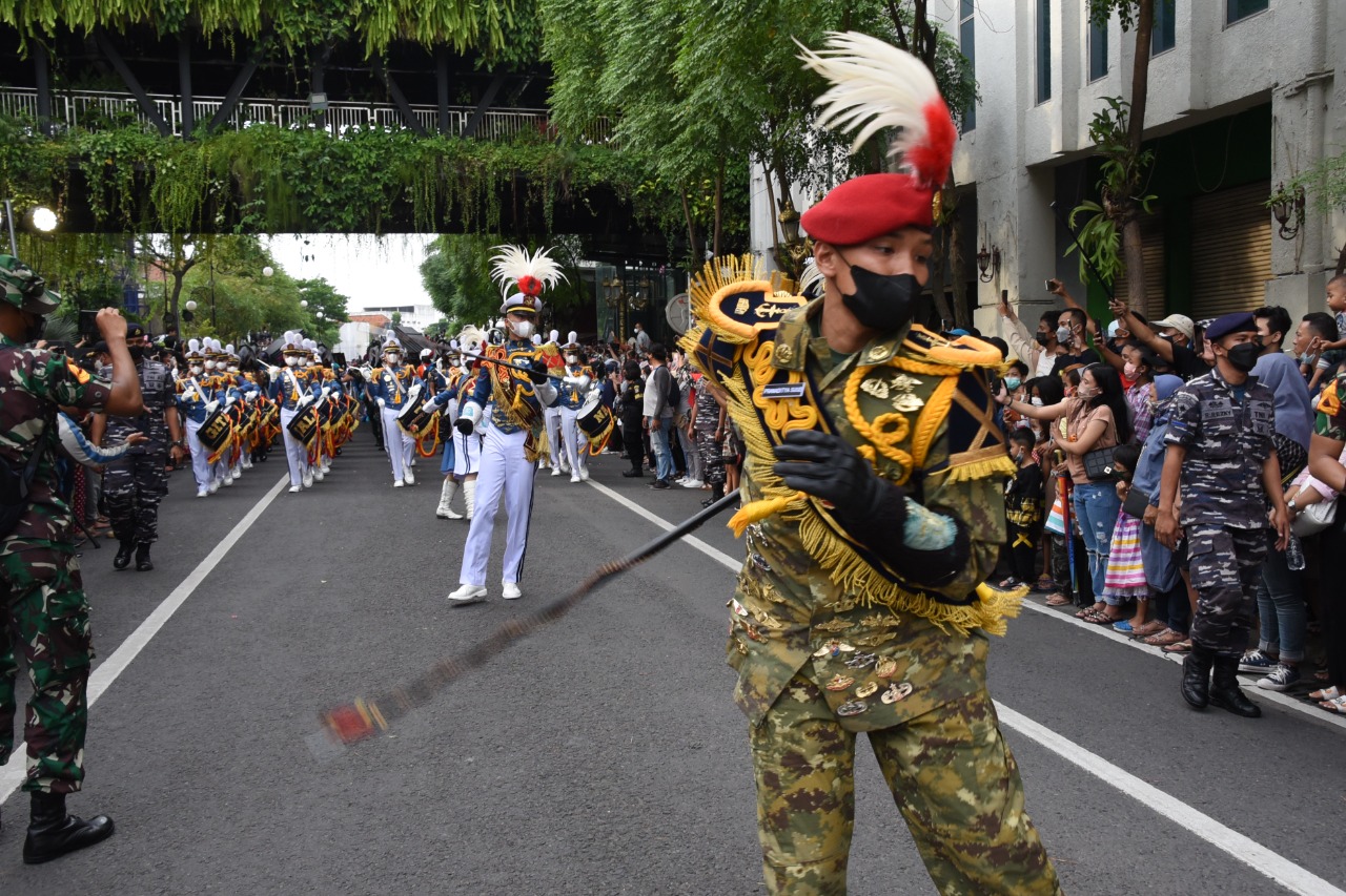 Tepat di tanggal peringatan Hari Armada, 5 Desember 2021 ini, 108 personel Genderang Suling (GS) Gita Jala Taruna Akademi Angkatan Laut (AAL) meriahkan Kirab Pasukan, Navy Day Hari Armada 2021 mulai dari Siola-Tunjungan hingga Gedung Negara Grahadi, Surabaya hari Minggu petang.