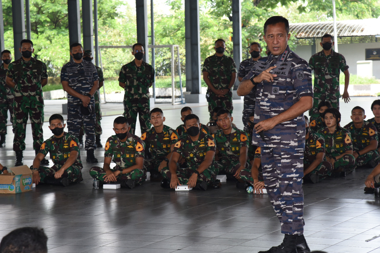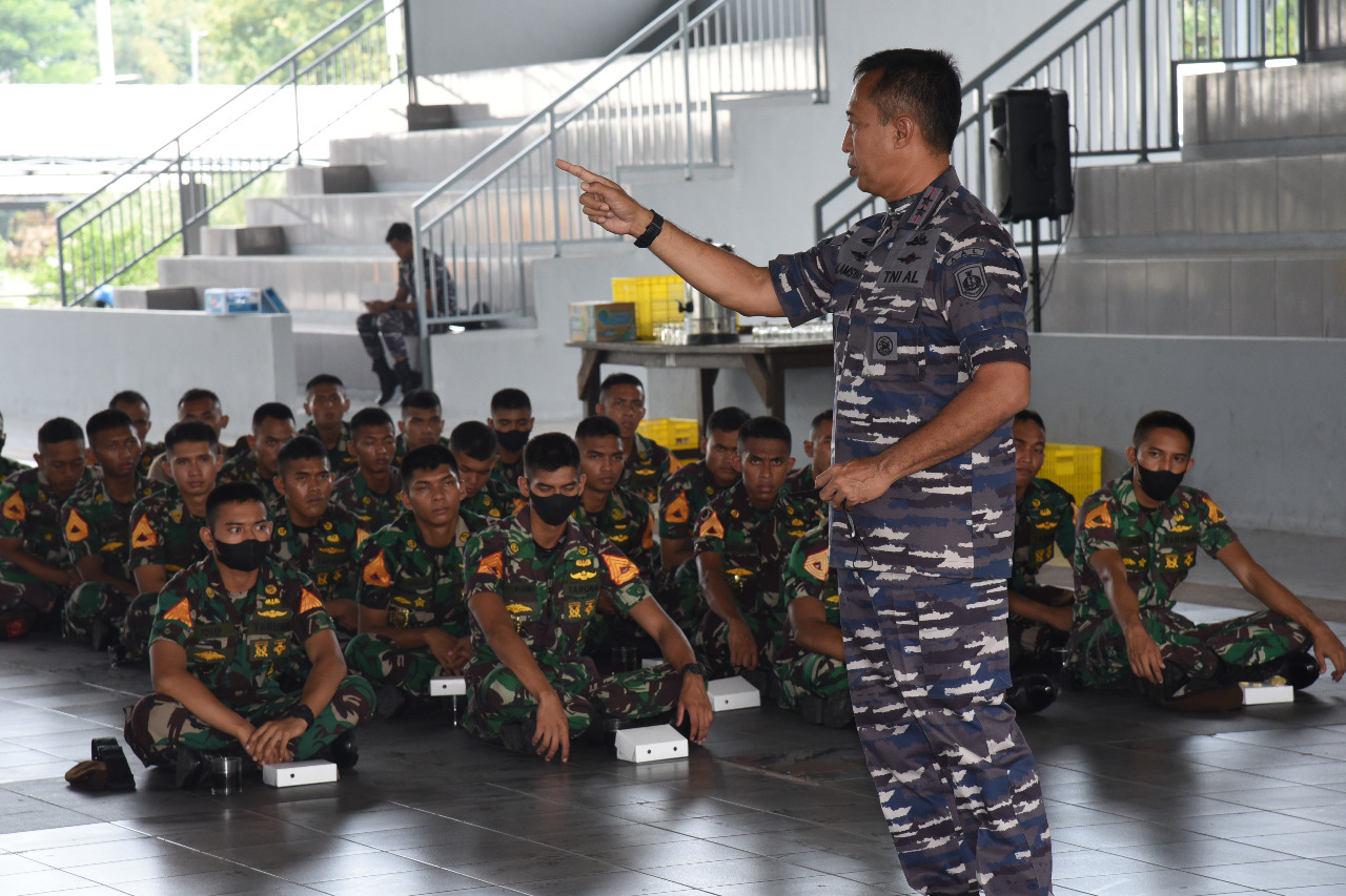 Taruna Akademi Angkatan Laut (AAL) menerima pengarahan dan pembekalan dari Gubernur AAL Mayjend TNI (Mar) Nur Alamsyah, dalam rangka persiapan cuti Natal dan Tahun Baru (Nataru), yang digelar di Indoor Sport Jala Krida Raga, Kesatrian AAL, Bumimoro, Surabaya, Senin (20/12).