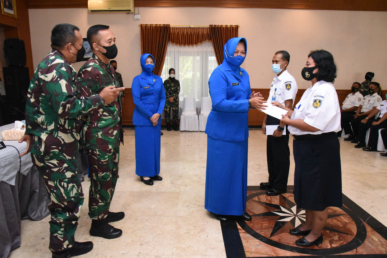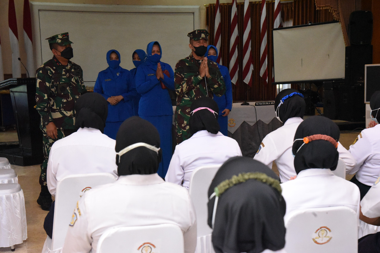 Pada arahan dan pembekalan kepada 55 orang PHL yang dilangsungkan di Gedung Dewakang, Kesatrian AAL, Bumimoro, Surabaya ini, Gubernur AAL beserta Ketua Cabang BS Jalasenastri AAL, Ny. Ayu Nur Alamsyah, juga berkesempatan memberikan taliasih kepada para PHL AAL ini.
